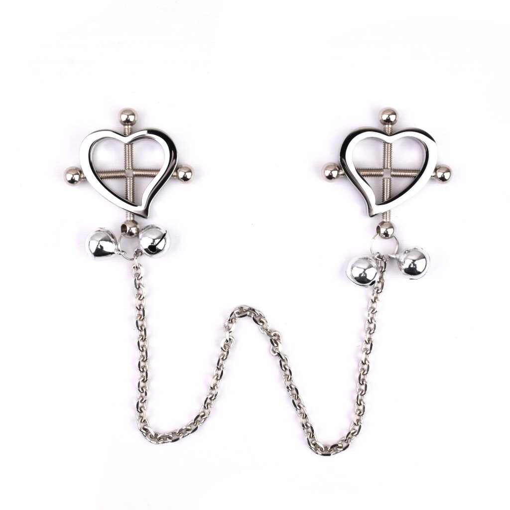 Herzförmige Nippelklemmen aus Edelstahl mit klingelnden Glöckchen: Romantisch und verspielt