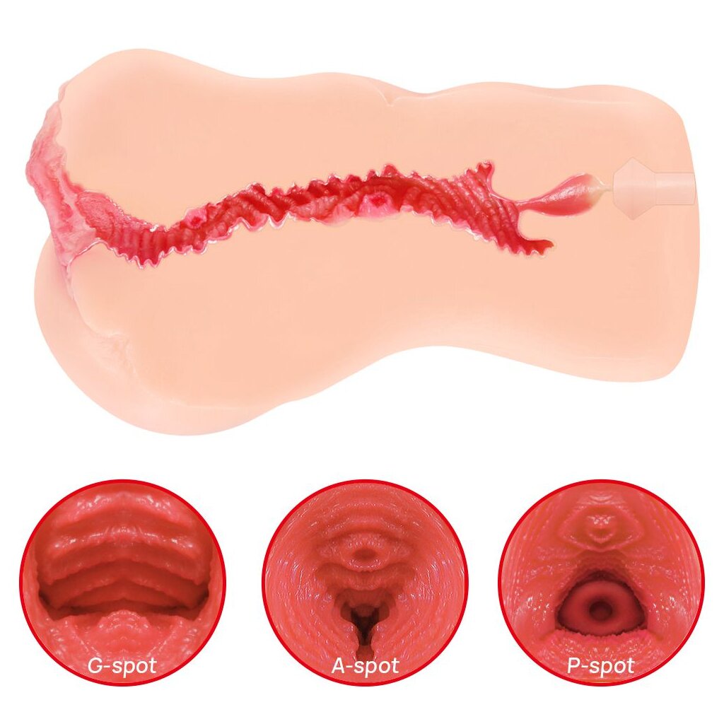 Die äußere Schicht ist weich und hautähnlich, während die innere Schicht ein festeres und strafferes Gefühl bietet und so ein intensiv stimulierendes Erlebnis schafft. Die fortschrittliche innere Struktur, die einer erregten Vagina nachempfunden ist, wurde sorgfältig entworfen, um bei jeder Bewegung maximale Stimulation zu bieten. Das Onahole verfügt über realistische weiche Schamlippen, einen G-Punkt, A-Punkt und P-Punkt.