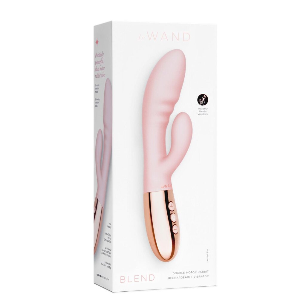 Le Wand Blend, rechargeable rabbit vibrator with dual motor. Immerse yourself in a variety of sensations with Le Wand Blend! Featuring a dual motor design for enhanced clitoral and G-spot sensations, the powerful, portable and adaptable size is perfect for a variety of situations. Use the double vibrating rabbit design for a mixed orgasm of a lifetime, providing multiple simultaneous sensations internally and externally. Use the bendable neck to reach all the spots you want during solo play, or give your couple activities that extra kick. Blend comes complete with travel lock, LED charge indicator and micro suede travel case for discreet storage. Size: 6.0 x 20.2 x 3.6 cm