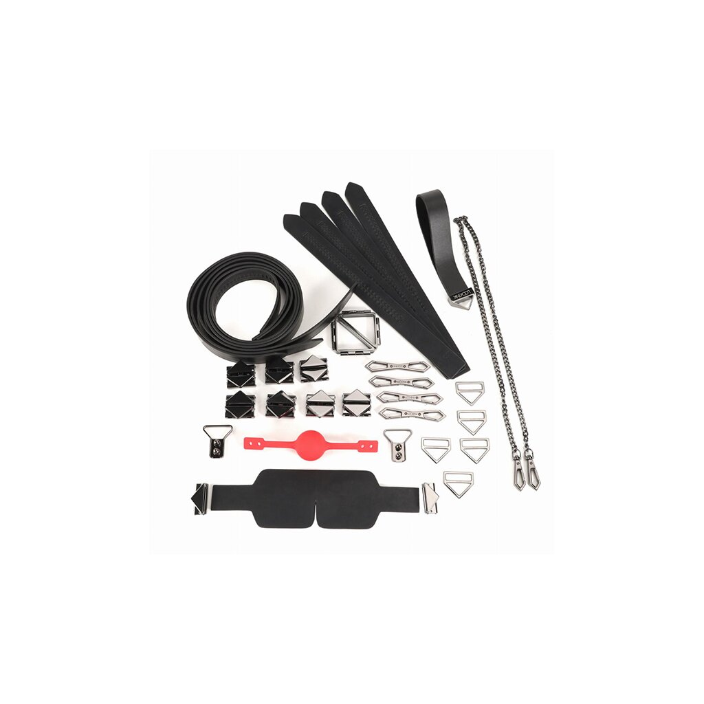 • Das Set enthält eine Augenbinde, verschiedene Arten von Riemen, zum Beispiel für Hand- oder Fußfesseln, einen Ballknebel und vieles mehr!