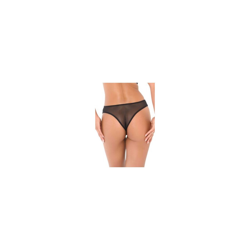 Sehr sexy V-String, mit Spitze auf der Vorderseite, durchsichtigem Netz auf der Rückseite, drei dekorativen Trägern, Rauten-Detail und Baumwoll-Schritt für hygienischen Komfort.