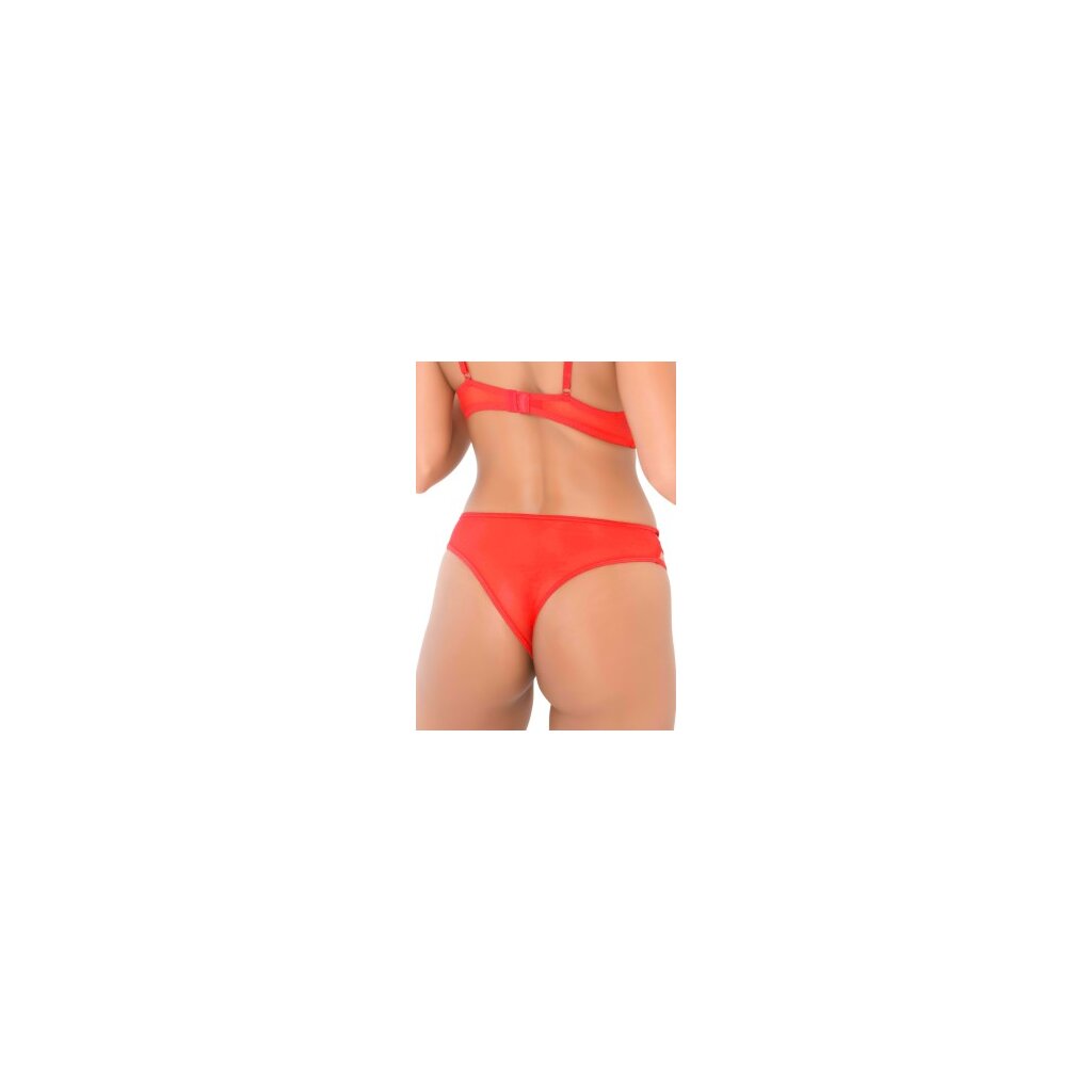 Mix & Match der Spitzenstring mit Trägern. Sehr sexy V-String, mit Spitze auf der Vorderseite, durchsichtigem Netz auf der Rückseite, drei dekorativen Trägern, Rautendetail und Baumwoll-Zwischenschritt für hygienischen Komfort.