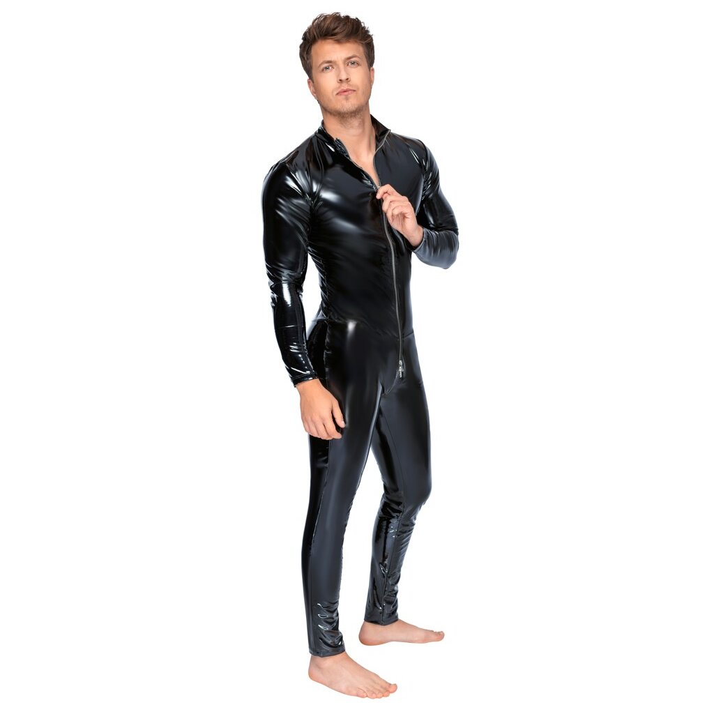 Jumpsuit von Black Level mit 3-Wege-Metallreißverschluss vom kleinen Stehkragen durch den Schritt bis über den Po. Gefertigt aus 4-Wege-Stretch-Vinyl mit edlem Glanz. Die hochelastische Qualität schmiegt sich eng an die Haut, sorgt für eine absolut perfekte Passform und trägt sich sehr angenehm und bequem.