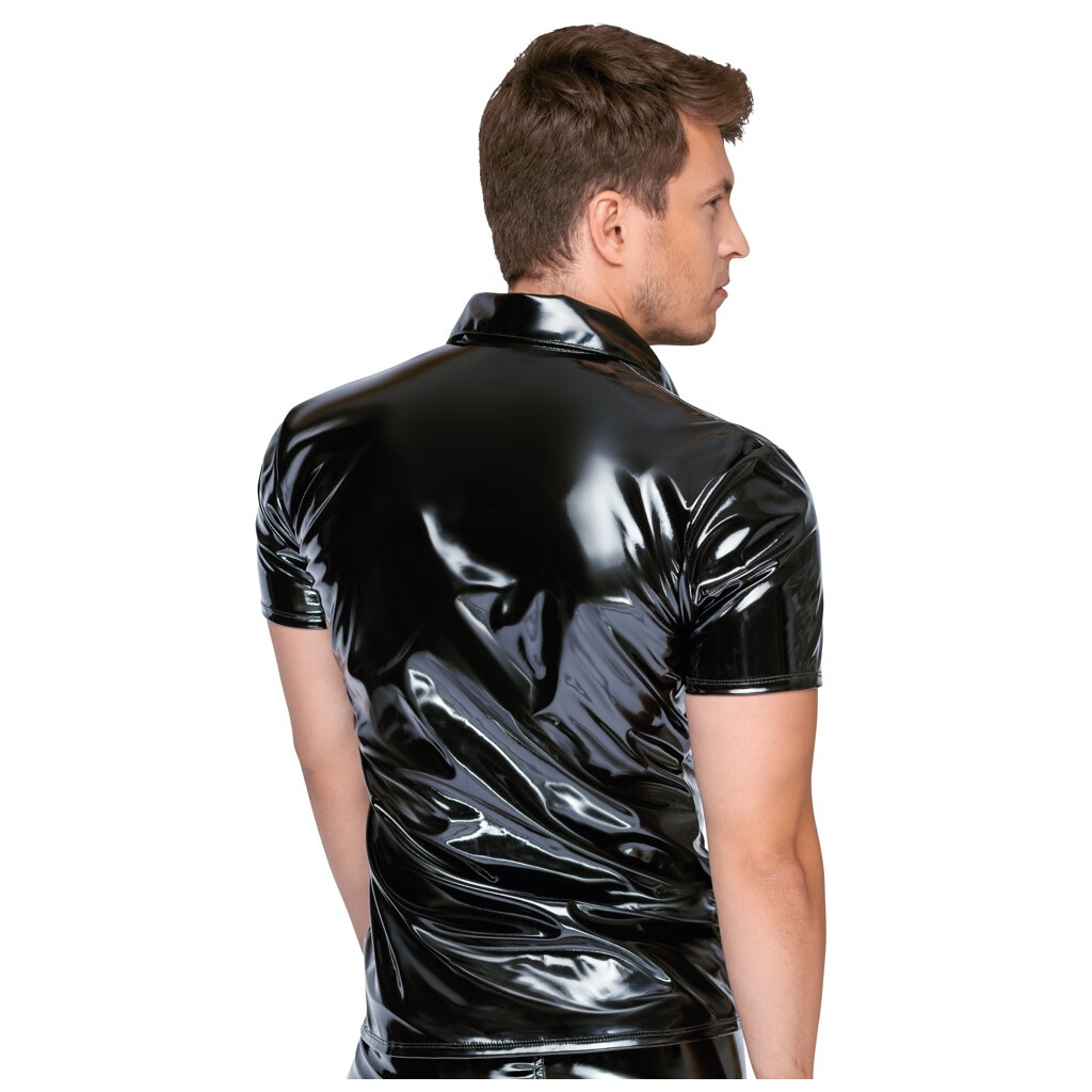 Polo de Black Level entièrement en vernis noir brillant. Coupe cintrée et style polo classique avec demi-manches, col et courte patte de boutonnage sur le devant. Elastique tout autour pour un ajustement parfait et un grand confort de port.