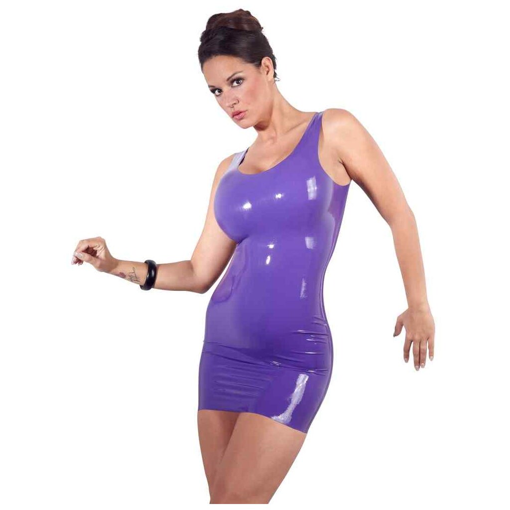 Extremely hot in a trendy colour! This sleeveless latex mini dress fits like a second skin and puts your sexy curves in the limelight like no other dress! What are you waiting for? Slip into this seductive purple dress and make men go weak at the knees…