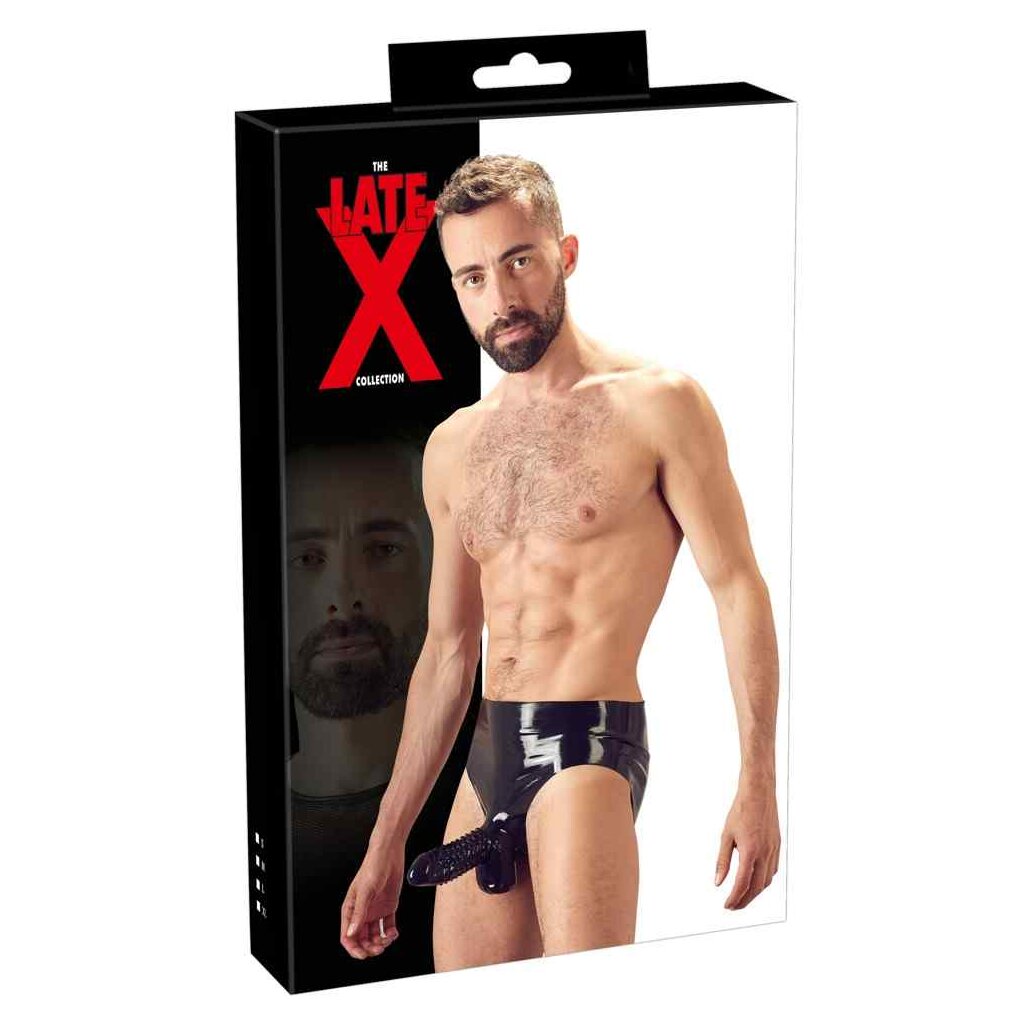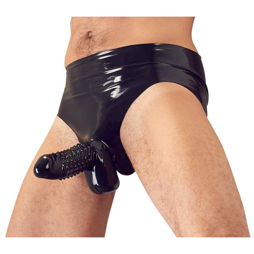 Perfect for a quickie! These pants mean that every fetish lover with a penis is perfectly equipped. The dotted sleeve with textured glans integrated into the pants is made out of latex and is wonderfully skin tight. The integrated sleeve also has a textured pouch for the testicles. It is perfect for latex lovers who want to share their liking for latex with others.