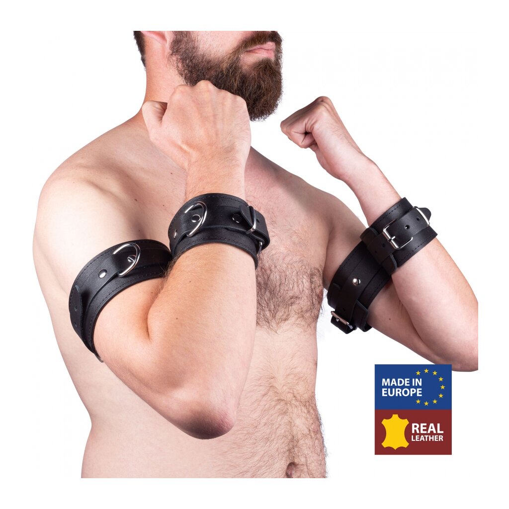 Dieses Accessoire der Marke The Red wurde entwickelt, um Arme und Unterarme aneinander zu fesseln. Damit kann die Unterwerfung noch aufregender gestaltet werden. Der Umfang beträgt 21 bis 31 cm für die Unterarme. Der Umfang beträgt 34 bis 48 cm für die Arme. Aus echtem Rindsleder. Pflanzlich gegerbt.