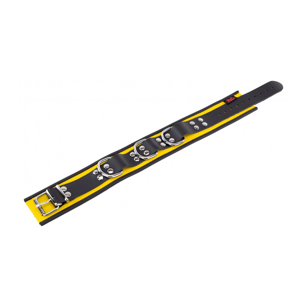 This leather collar from The Red has a width of 6.5cm, 3 metal D-rings for attaching additional accessories including a lead and a neck size of 38-52cm.