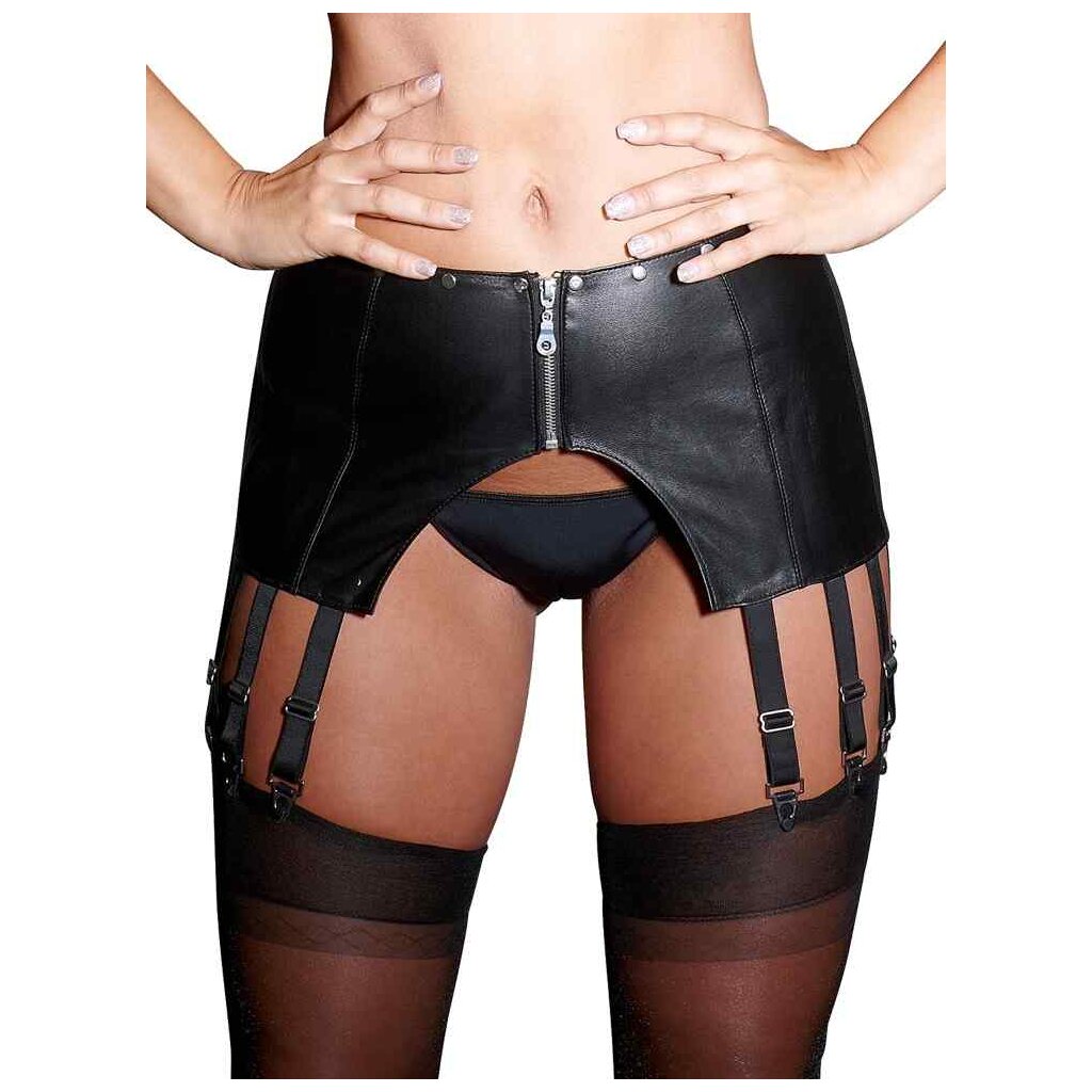 Un cadeau sexy pour votre partenaire ou pour vous faire plaisir... Quelle que soit la raison, vous ne devriez pas passer à côté de ce large porte-jarretelles réalisé en cuir nappa d'agneau noir souple. Les clous décoratifs sur la ceinture et les 6 bretelles réglables de chaque côté attirent le regard. La fermeture éclair à l'avant et le laçage à l'arrière complètent le look et garantissent un ajustement parfait du porte-jarretelles. Votre partenaire aura les genoux fragiles en vous voyant !