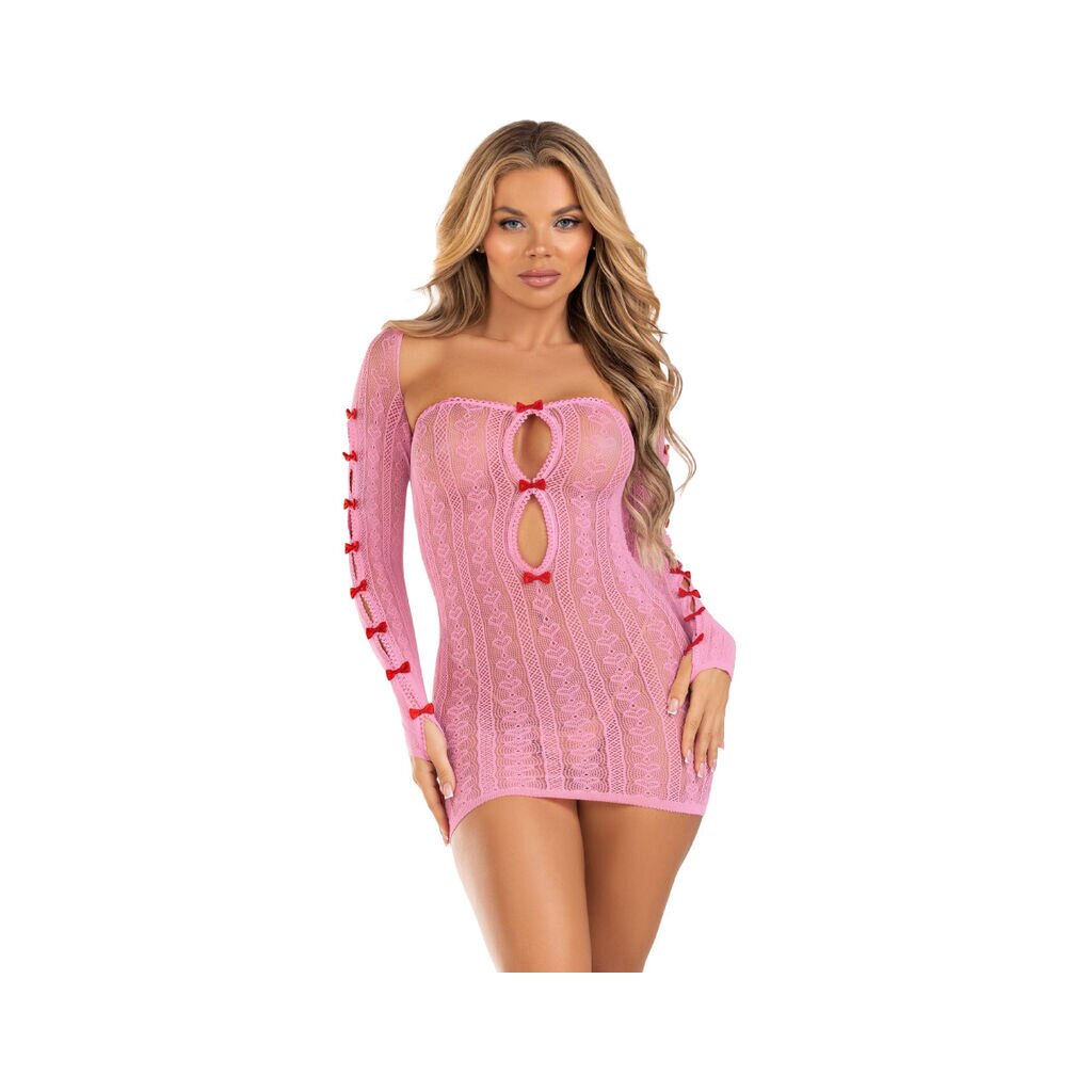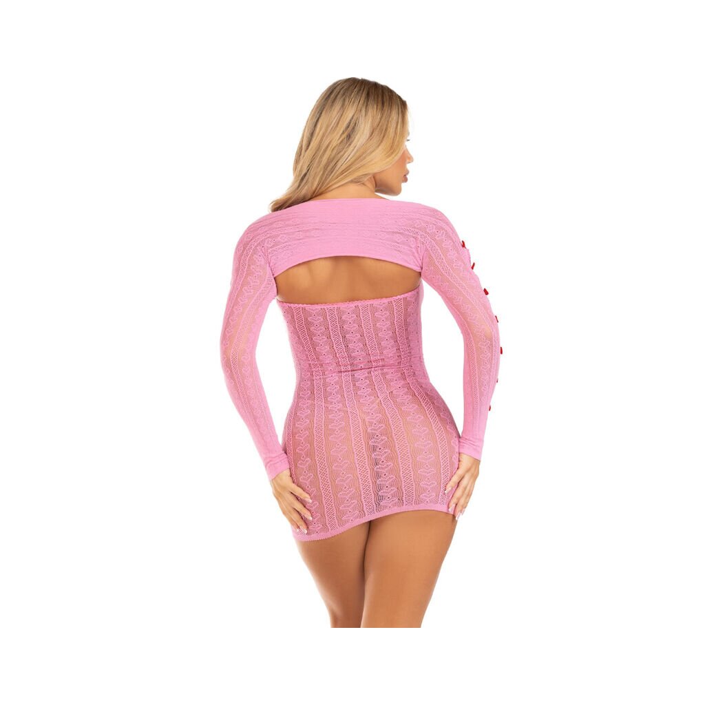 Get ready to turn heads in this flirty two-piece sheath dress and matching bolero from Leg Avenue that perfectly combines sweet and spicy elements. The heart-shaped, striped shift dress and puff-sleeved bolero are embellished with mini bows, making this versatile ensemble ideal for both the bedroom and for covering up a sexy swimsuit by the pool.