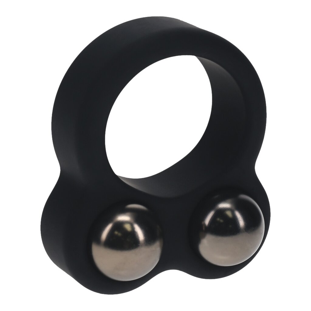 The Levelz Duo Weight penis ring features two removable weight balls with a total weight of 136 g. The 35 mm inner diameter provides a firm fit.