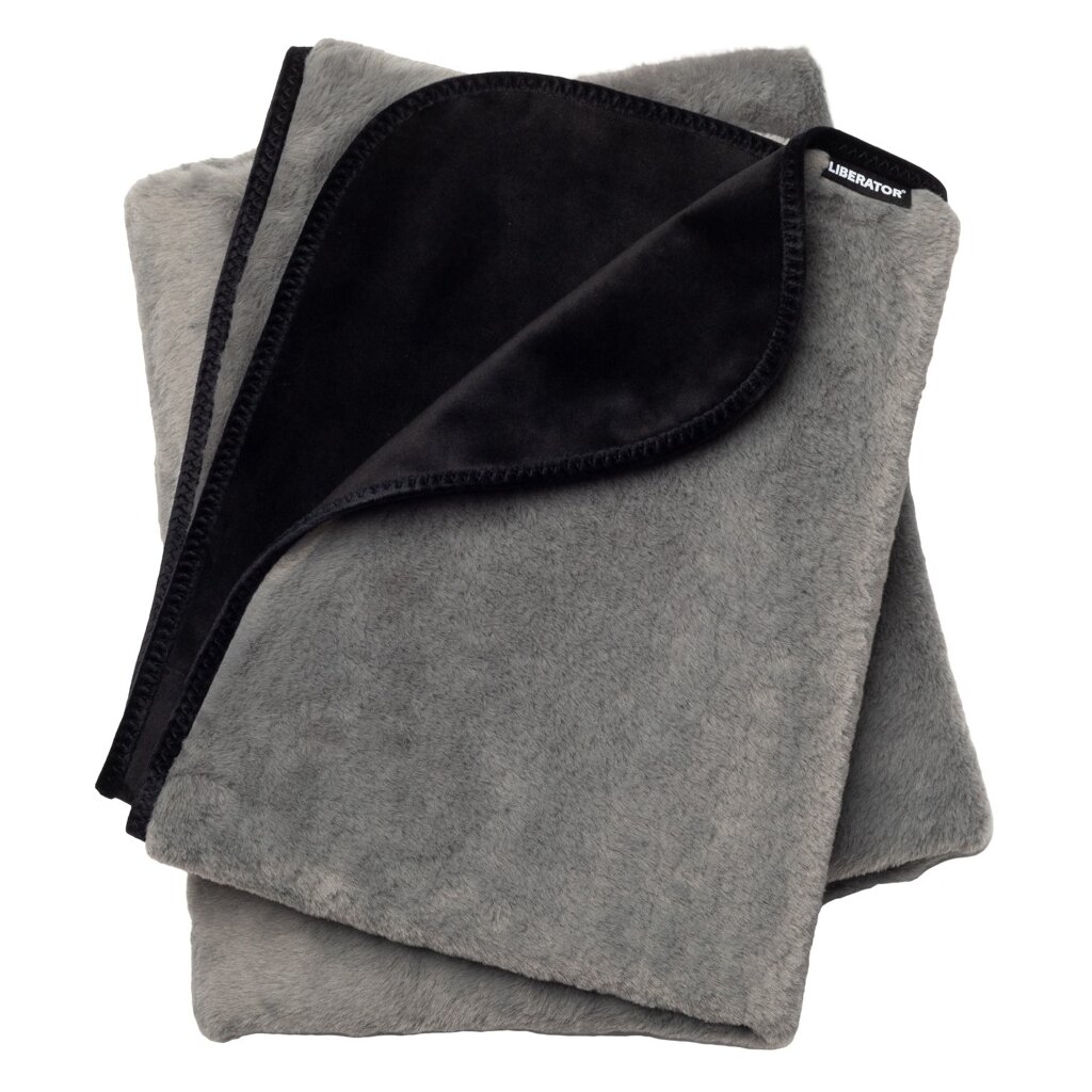Luxurious love blanket Faux Fur Fascinator by Liberator in an elegant design and cuddly soft quality. Reversible: one side with cozy faux fur in gray, the other side with soft velvety microfiber in black. And in between, a hidden moisture barrier. The perfect comfortable underlay to keep everything dry, clean, and stain-free during sex. For optimal protection of beds (linen), sofas, carpets, etc. – at home or on the go.