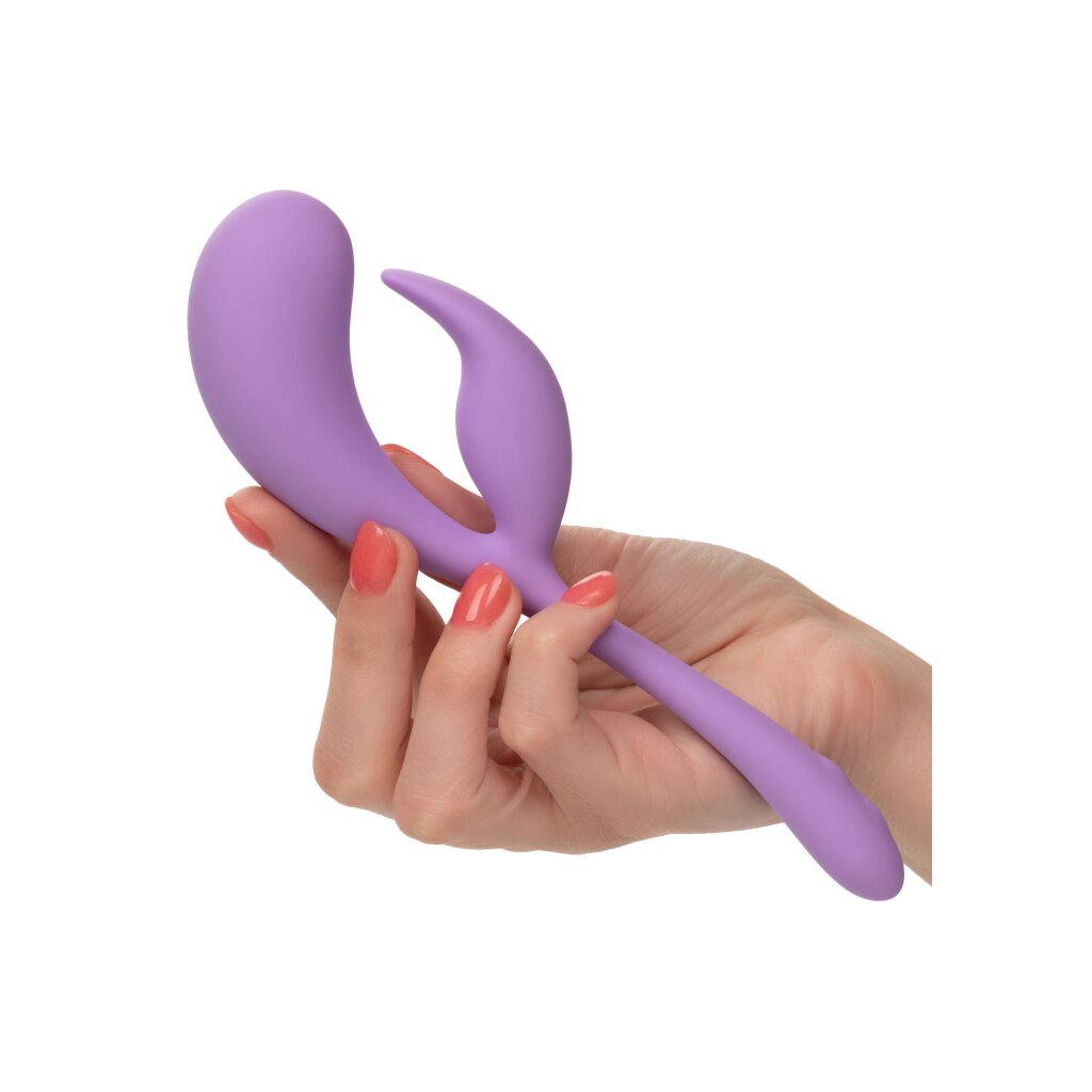 The Elle Liquid Silicone Dual Flicker will send you into waves of pleasure and move you in all the right ways. The tight-fitting vibrator is as exciting as it is versatile with an ultra-flexible body, a flickering rabbit teaser and 10 indulgent vibration functions. From steamy solo showers to hot moments in the bath, let the waterproof surface and powerful vibration functions seduce you. The easy-to-use 2-button control lets you cycle through the knee-shaking settings. While you use the buttons to control the intensity and the vibrator gives you the stimulation you want, the pliable body holds any position you desire. Charge the premium silicone teaser in 2.5 hours with the included USB charging cable and enjoy 35 minutes of high-speed stimulation or 90 minutes of low-speed vibration. The liquid premium silicone is body safe, unscented and phthalate free. It is softer, smoother and more durable than conventional silicone. Product dimensions: 18.5 x 5 cm / 10 vibration modes / Waterproof / Rechargeable / Material: silicone