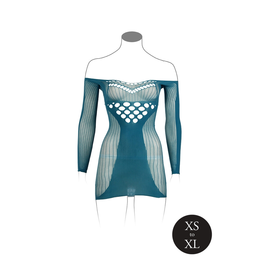 Long-Sleeved Net Mini Dress BlueOnesize - Queensize