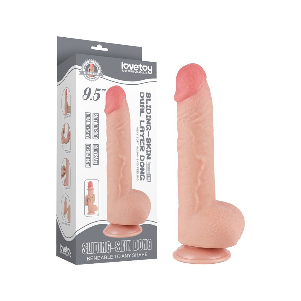 The patented suction cup of the latest Sliding Skin dildo can be screwed on or off for comfortable use. This dildo is made of realistic, dual-layer material for a lifelike feel. A special dual-density technology is used to simulate the feeling of an erect penis and the user can enjoy a soft outer skin and a satisfyingly firm centre. This realistic dildo can easily be bent into any shape. Diameter: 4.3 cm / Length: 24 cm / Waterproof / Material: TPE