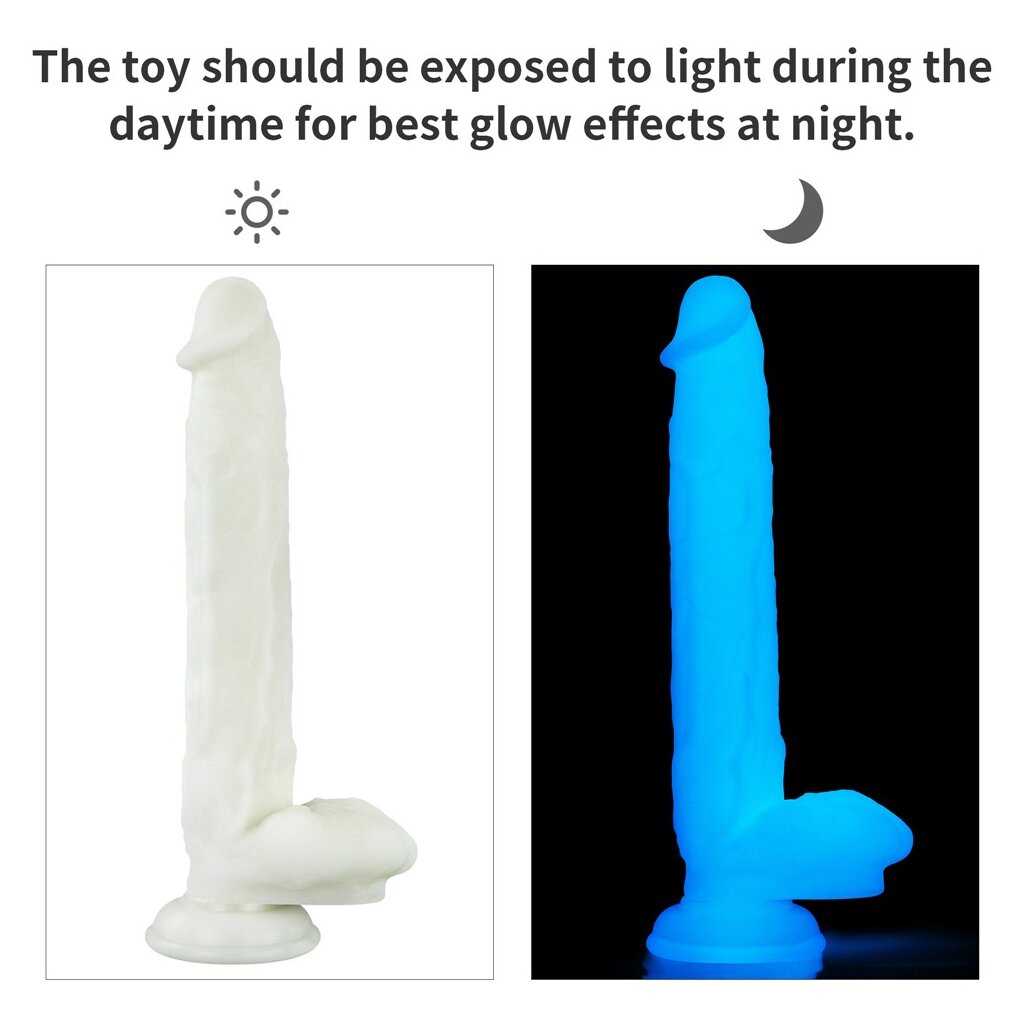 Immerse yourself in the world of glowing pleasure with the Lumino Play silicone dildo from Lovetoy! This transparent dildo isn't just a toy, it's an experience. With a diameter of 4 cm and an impressive length of 26.9 cm, it offers you intense stimulation and unforgettable moments. The Lumino Play dildo is more than just an ordinary toy - it is your companion for exciting adventures, especially when the lights go out. Thanks to the non-toxic glow powder, this dildo emits a colorful blue light at night that will bring your darkest fantasies to life. With realistic texture and vein patterns, the Lumino Play dildo provides authentic stimulation for unforgettable climaxes both vaginally and anally. Its waterproof feature allows you to enjoy sensual moments even in the shower or in the water. To achieve the best lighting effects, the dildo should be exposed to light during the day. This way you can look forward to a night full of glowing pleasure. Experience a new dimension of pleasure with the Lumino Play silicone dildo from Lovetoy and be enchanted by its colorful glow.