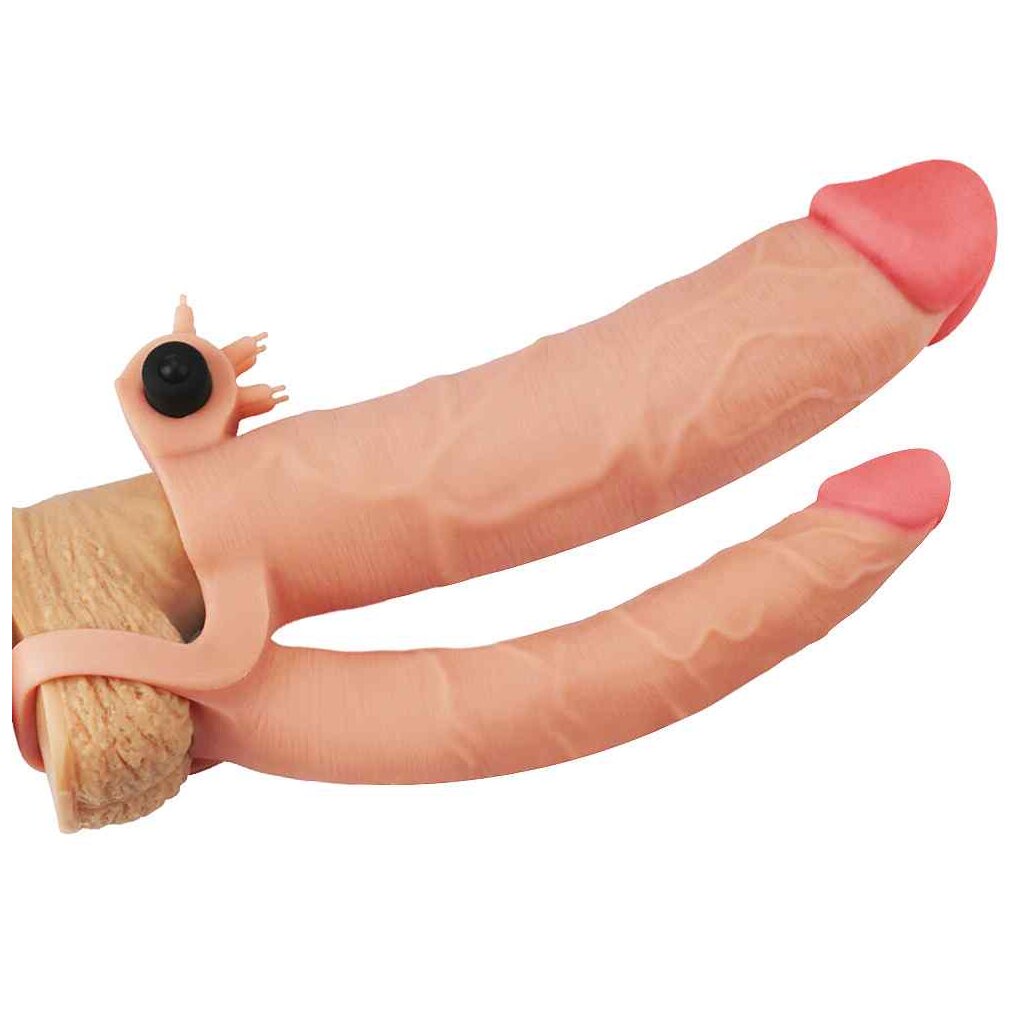 Lovetoy Pleasure X-Tender Vibrating Double Penis Sleeve Doppeldildo Beige 21 cm ⌀ 5,1 cm
