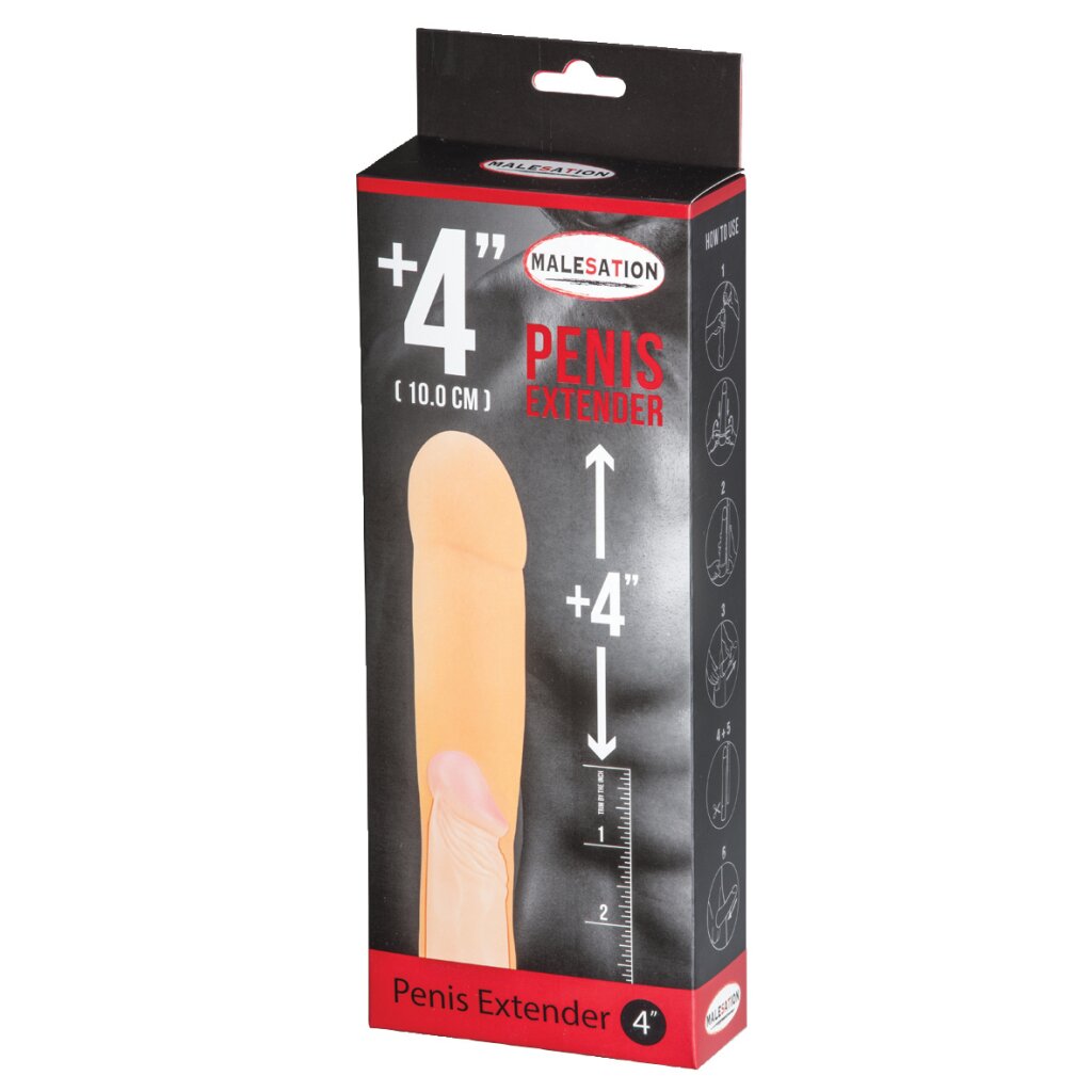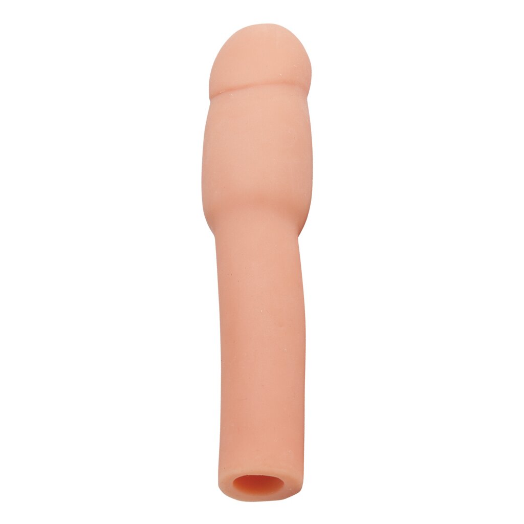 Penis sheath with an extension piece already anchored in the tip (approx. 10.0 cm) provides an optical extension and at the same time more girth. Extension can be customised as you can cut the sheath for a perfect fit. A smooth, very soft and seamless surface provides a realistic feel. Material: TPE, total length: approx. 20 cm, Ø approx. 1.75 cm, wall thickness: approx. 0.5 cm.
