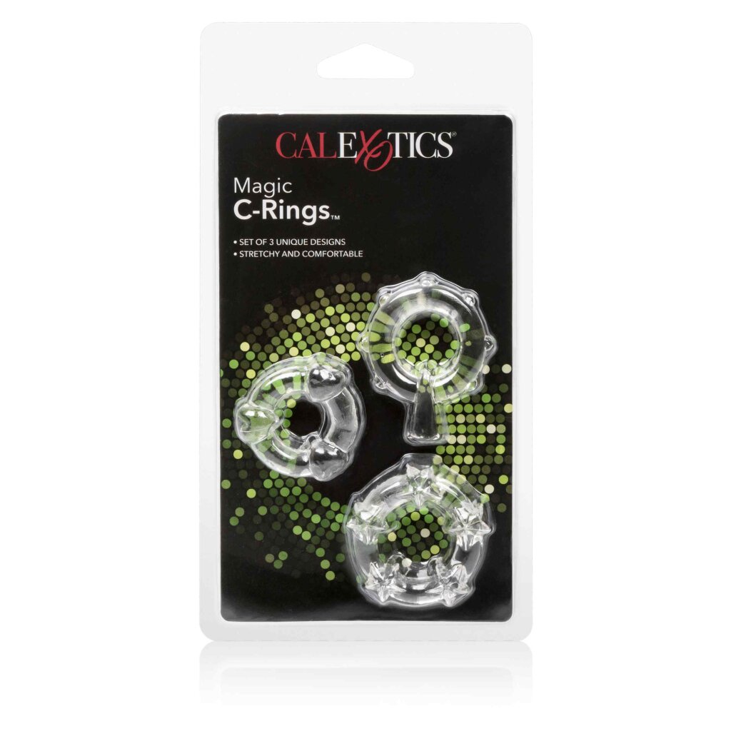 Introduisez une surprise sensuelle dans vos jeux avec les Magic C-Rings. Ce trio exotique, composé d'amplificateurs d'érection confortables et extensibles, améliore comme par magie votre capacité de séduction pour une performance optimale à chaque fois. Ces anneaux réutilisables et polyvalents sont conçus pour des jeux intimes prolongés et une satisfaction sensuelle illimitée. Choisissez votre stimulateur de plaisir préféré et vivez une expérience de stimulation non-stop. Fabriqués en TPR robuste, doux et lisse, hygiéniquement supérieur, les anneaux transparents sont ornés de nodules de plaisir sensuels en forme de cœur et d'étoile, pour une sensibilité et une stimulation accrues. Les 3 anneaux d'érection alléchants sont conçus pour soutenir l'endurance de l'érection pour des performances érotiques prolongées.