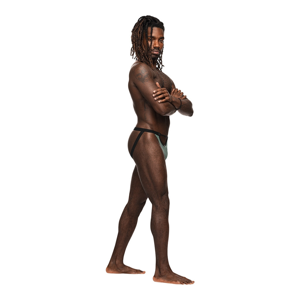 Issu de la collection Male Power Magnificence, ce modèle comprend une blouse avec une fenêtre découpée à la taille, des œillets métalliques décoratifs et une ceinture élastique en peluche fine et bien ajustée. Bandes élastiques en peluche au niveau des fesses.
