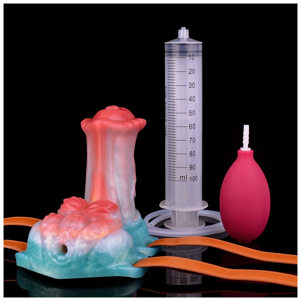 The Marshall - Squirting Dildo is a fantasy toy designed to impress with its compact size, bold design and versatile features. Measuring 13 cm in total length, 11 cm in width and 12.4 cm in height, it is compact yet intense. With an insertable length of 9.4 cm and a total weight of 611.1 g including injector pump and belt, it offers stable and exciting play sessions.