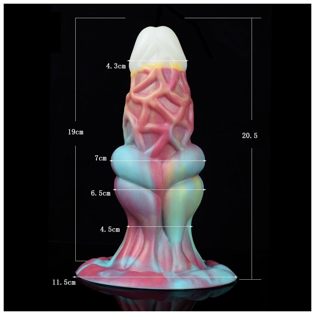 Le godemiché est d'une dureté modérée, il est inodore, résistant à l'eau, il a une ventouse puissante, une pointe conique pour faciliter l'insertion, une surface lisse et une texture particulière pour des expériences de plaisir passionnantes.