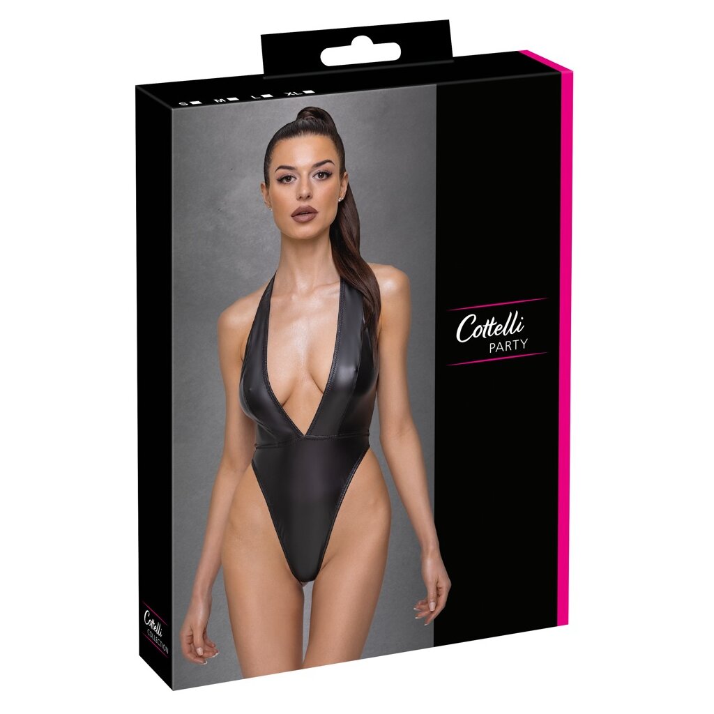 Corps rio-string très peu coupé en noble look noir mat de Cottelli PARTY, qui colle à la peau de manière douce et élastique. Avec un décolleté profond à couper le souffle et un dos libre. Encolure dos nu avec bouton-pression. Les découpes extra hautes des jambes mettent en valeur les fesses et les jambes. Pratique et séduisant à la fois, le bouton-pression à l'entrejambe.