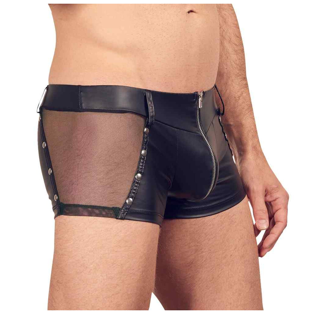 Un pantalon élégant avec un zip pratique et érotique ! Un pantalon flatteur pour la silhouette en matière tendance d'aspect mat avec des inserts en filet transparent et des clous décoratifs de chaque côté. Avec des passants de ceinture et une fermeture éclair rembourrée à l'avant.