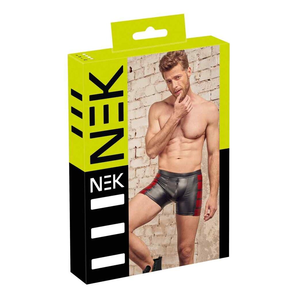 Black pants from NEK made out of trendy matte look material with red inserts at either side. There is a practical, padded zip at the front that can be unzipped quickly for erotic fun. Wonderfully stretchy pants that are extremely comfortable to wear.