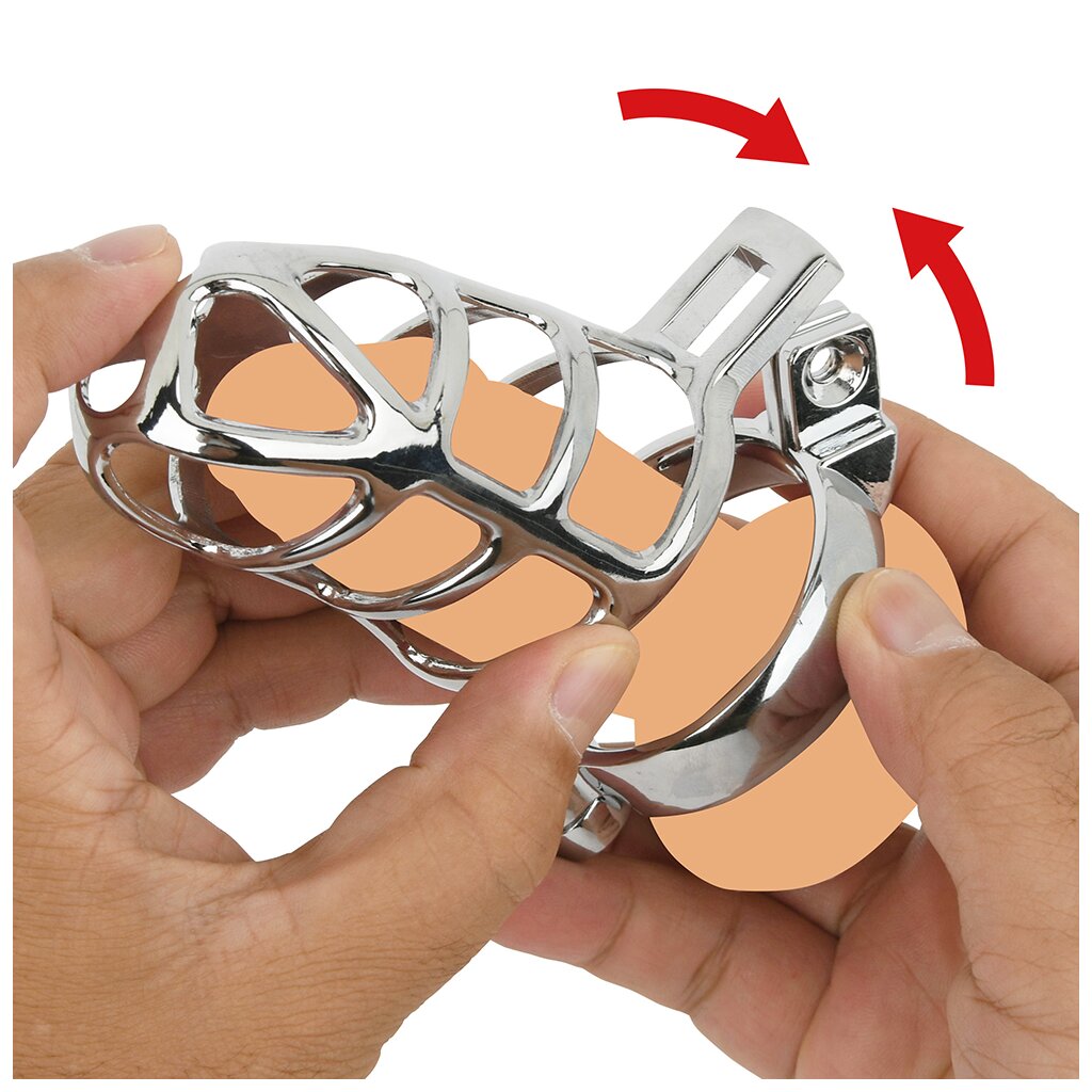 La cage, qui ressemble à un cadre monocoque tridimensionnel, est fabriquée de telle manière que même une légère érection n'est pas possible. Il faut donc s'y préparer à tout prix. Le diamètre intérieur est standard (40-45 mm). Nous déconseillons toutefois de l'utiliser si ta queue a déjà du mal à entrer dans la cage lorsqu'elle est molle.