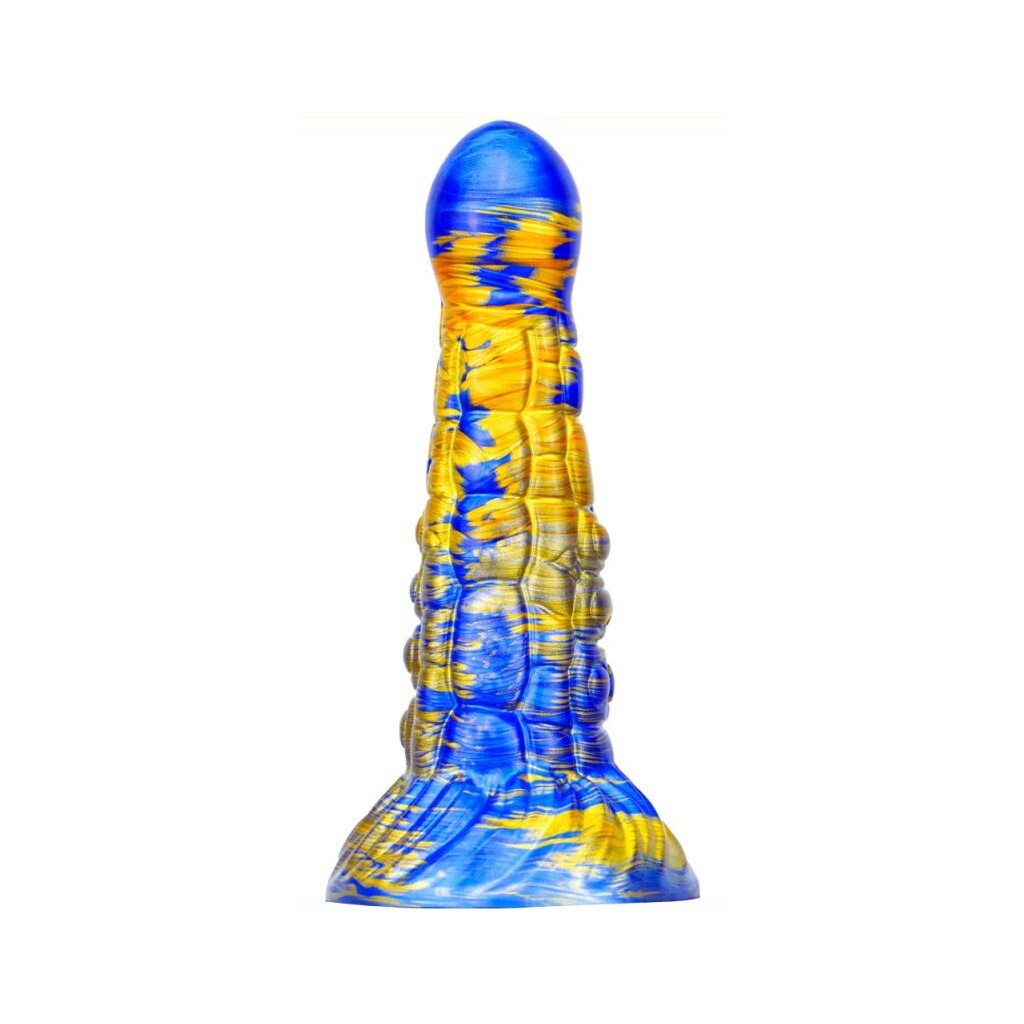 The MetallicAnal Fantasy Ninja Dildo offers a whole new level of pleasure in an eye-catching gold and blue design. Its original shape with an insertable length of 16 cm and a maximum width of 5.2 cm is perfect for those who want to explore their desires in a unique and adventurous way.This dildo is made of high-quality silicone and guarantees a smooth and comfortable experience. For optimal results, we recommend using a water-based lubricant to further enhance your pleasure.
