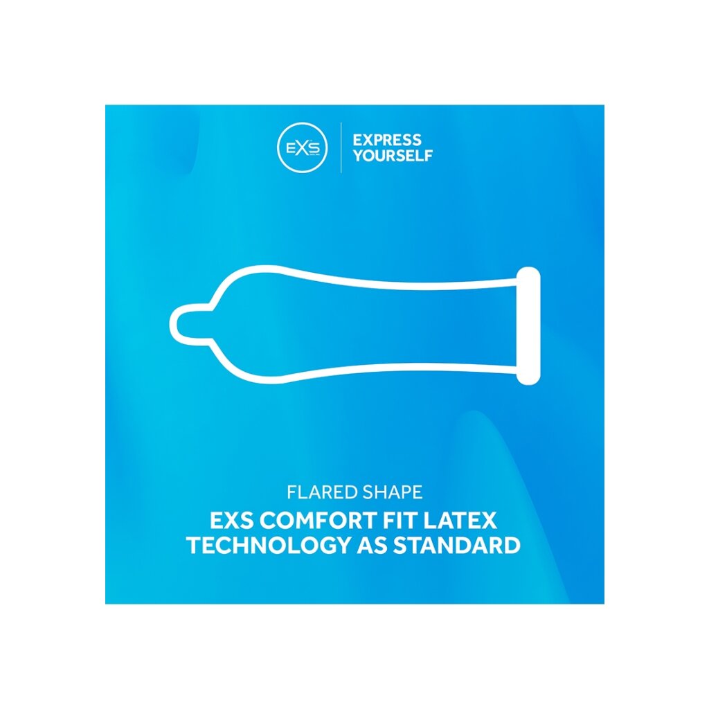 Contains 48 premium latex, EXS Mixed Flavoured Condoms. EXS Mixed Flavoured Condoms are designed to stimulate your imagination and ignite your senses during intercourse and foreplay. Seducing your partner with an enveloping aroma and a sweet and punchy flavour, these condoms are perfect for lovers who want to add a little kink to oral sex.