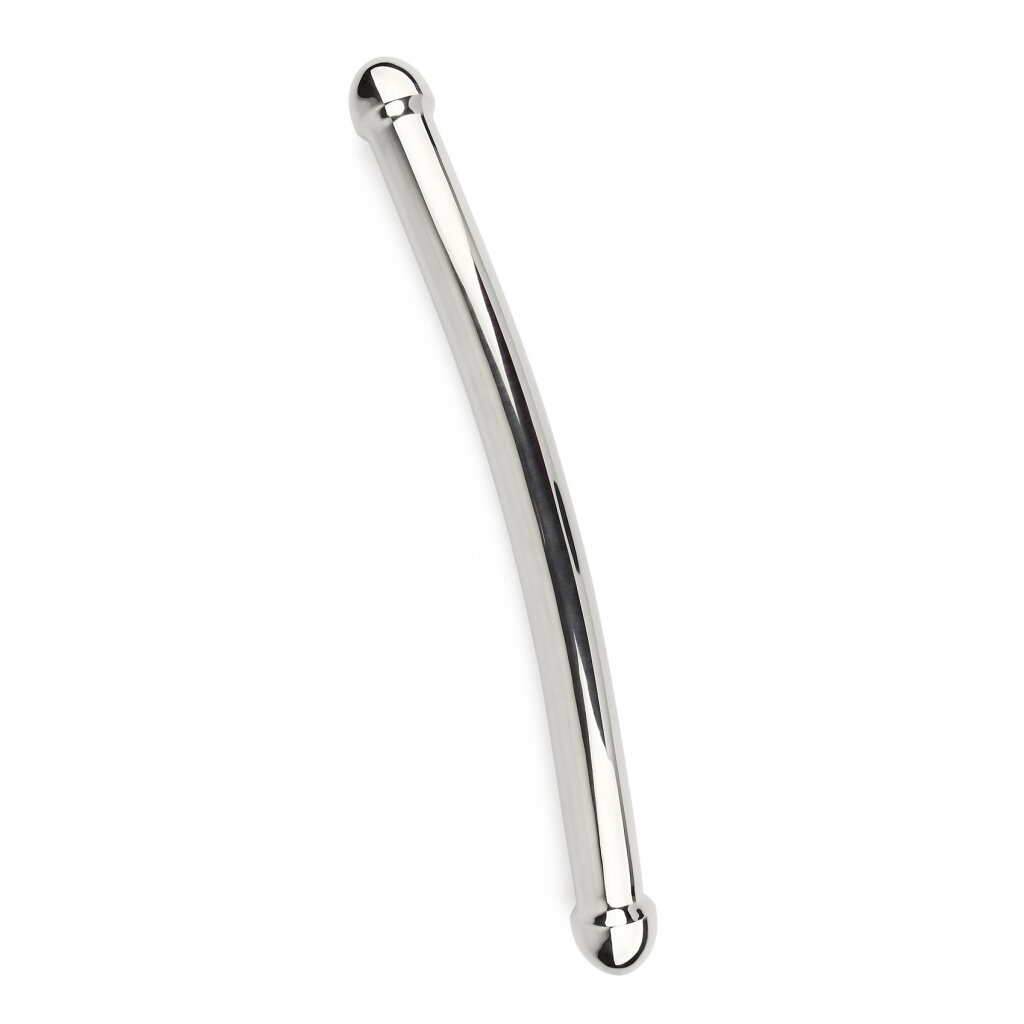 The Mr. Steel Double Header is a sleek, curved stainless steel pleasure tool featuring dual rounded ends for versatile stimulation. Its smooth, polished surface allows for effortless gliding, while the ergonomic shape ensures comfort and control. Ideal for those seeking deep, targeted pleasure with a premium feel.