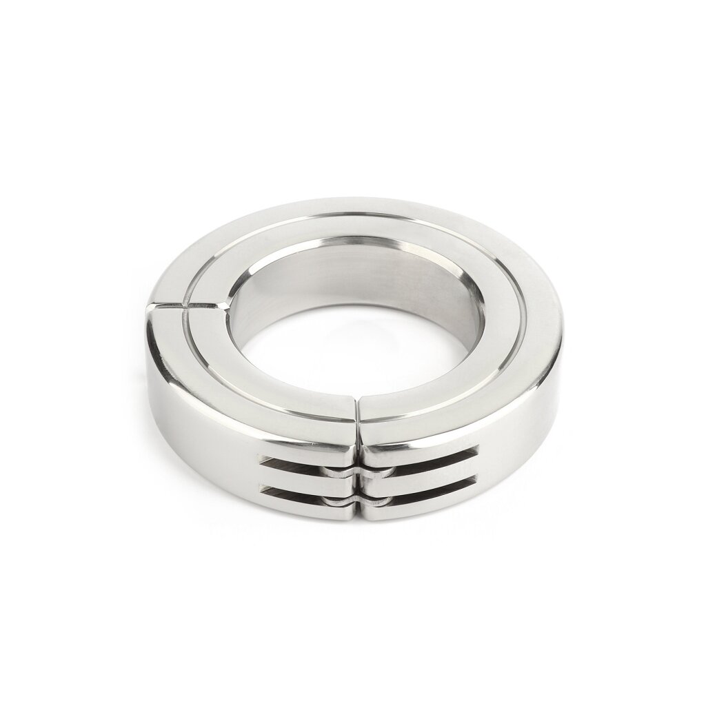 Le cockring magnétique à charnière de M. Steel allie un design élégant à la fonctionnalité, offrant un soutien ferme et un plaisir accru. L'ouverture à charnière permet de l'enfiler et de l'enlever facilement, tandis que la fermeture magnétique solide assure un maintien sûr. Fabriqué en acier inoxydable poli, il offre une sensation de poids pour une stimulation accrue. Disponible en plusieurs tailles pour un ajustement personnalisé.