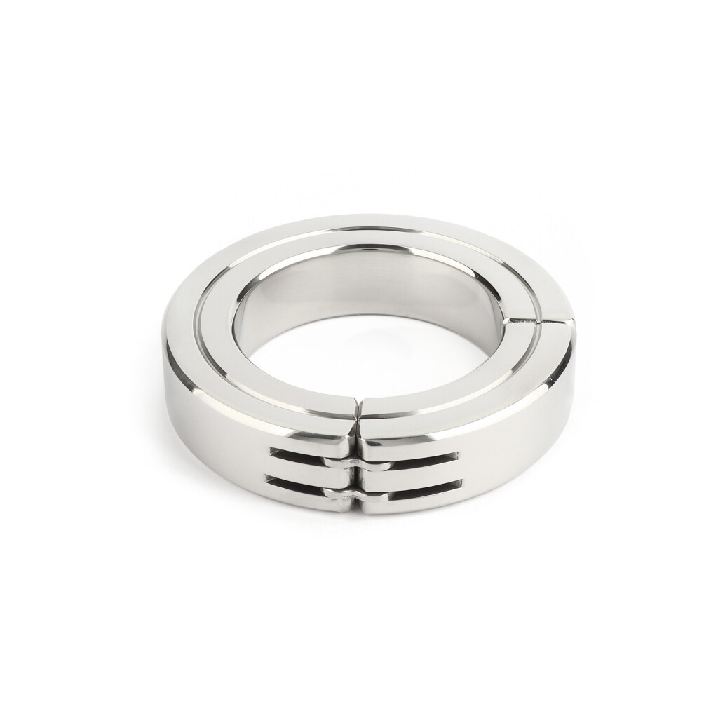 Le cockring magnétique à charnière de M. Steel allie un design élégant à la fonctionnalité, offrant un soutien ferme et un plaisir accru. L'ouverture à charnière permet de l'enfiler et de l'enlever facilement, tandis que la fermeture magnétique solide assure un maintien sûr. Fabriqué en acier inoxydable poli, il offre une sensation de poids pour une stimulation accrue. Disponible en plusieurs tailles pour un ajustement personnalisé.