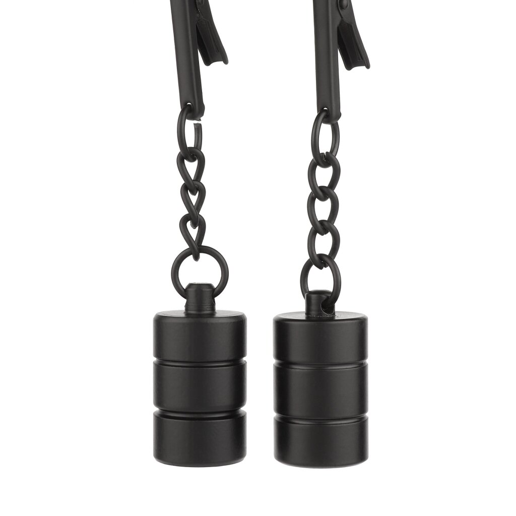 Les pinces à tétons Mr. Steel avec poids procurent une sensation intense aux utilisateurs expérimentés. Ces pinces en acier inoxydable de haute qualité sont équipées de poids qui augmentent progressivement la pression, améliorant ainsi la sensibilité et l'endurance. Le mécanisme réglable garantit un ajustement sûr et personnalisable. Idéales pour ceux qui souhaitent explorer les jeux avec des poids sur les tétons, elles offrent un équilibre parfait entre plaisir et douleur. Toujours nettoyer avant et après utilisation.