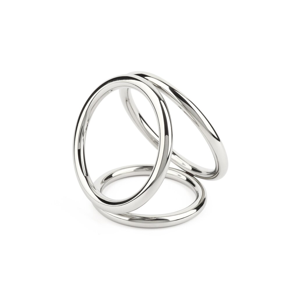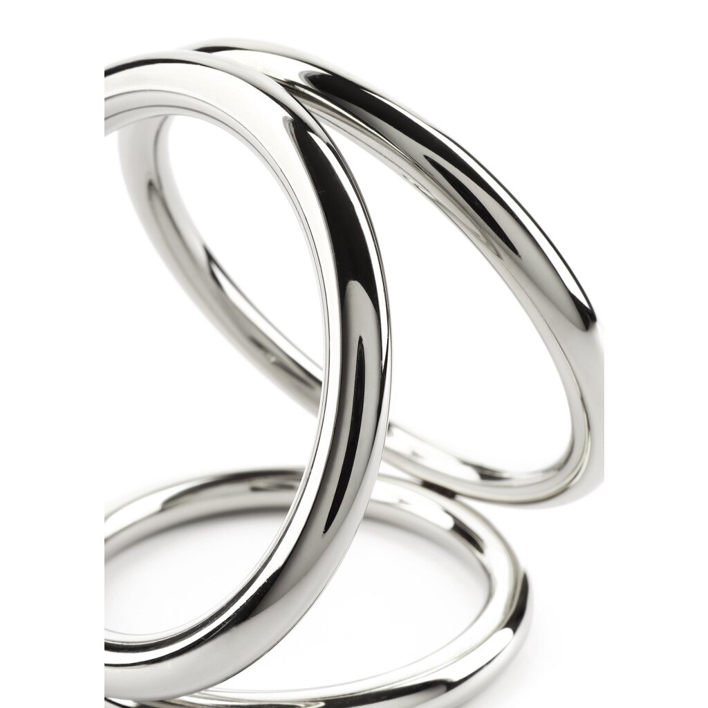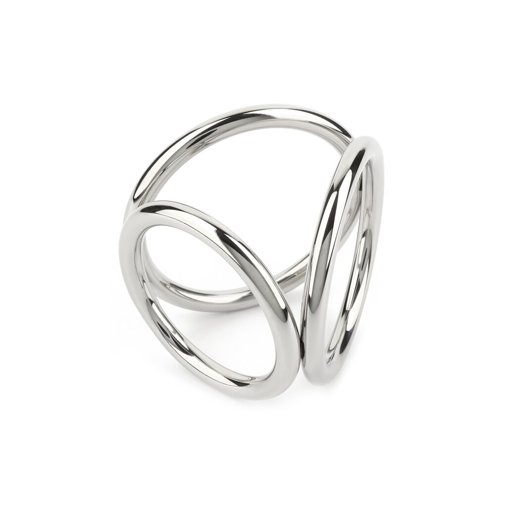 Der Mr. Steel Kammer-C-Ring ist ein dreiteiliges Ringdesign, das gleichzeitig die Basis des Penis, die Hoden und den Damm umschließt. Er besteht aus hochwertigem Edelstahl, sitzt fest und sicher und verbessert gleichzeitig die Ausdauer und das Lustempfinden. Die miteinander verbundenen Ringe bieten ein einzigartiges Gefühl und eine ansprechende Optik, wodurch er ideal für erfahrene Nutzer ist, die nach einer intensiven Stimulation suchen. Erhältlich in den Größen klein und groß.