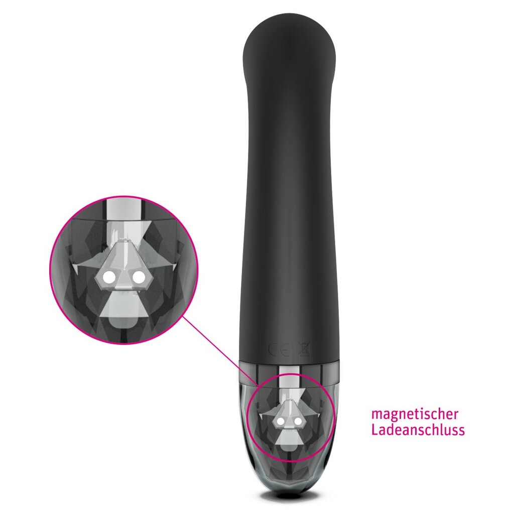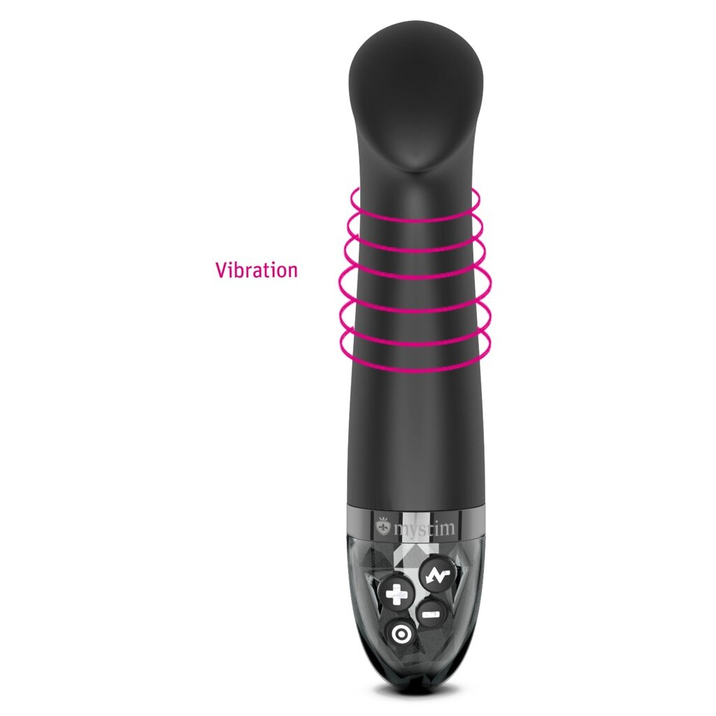 Handy vibrator Right on Ron E-Stim by Mystim with flattened head for targeted hotspot and intense intimate massages - alone or as a couple. 8 vibration modes and 5 E-voice modes provide plenty of variety when stimulating. In addition, as a very special function, an additional stimulation current program for perfect training of the pelvic floor muscles. Everything can be conveniently controlled directly on the toy at the touch of a button - separately or in combination.