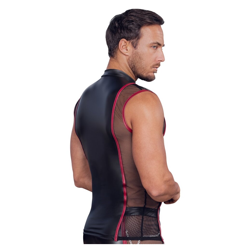 Ce débardeur de NEK associe style viril et élégance sensuelle pour un look affirmé et audacieux. Sa coupe près du corps met en valeur la silhouette, tandis que le design bicolore en look mat noir et rouge attire immédiatement le regard. Les détails argentés ajoutent une touche raffinée et puissante.