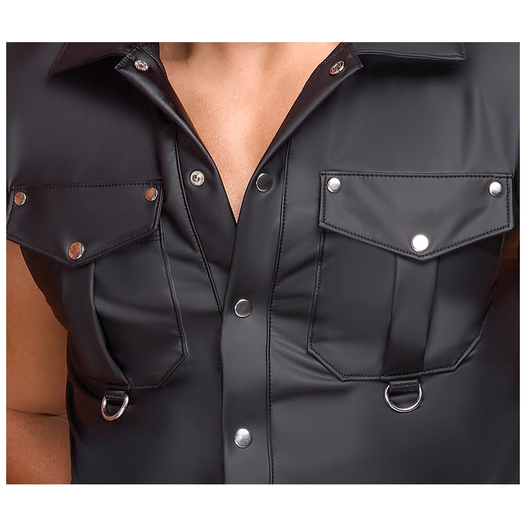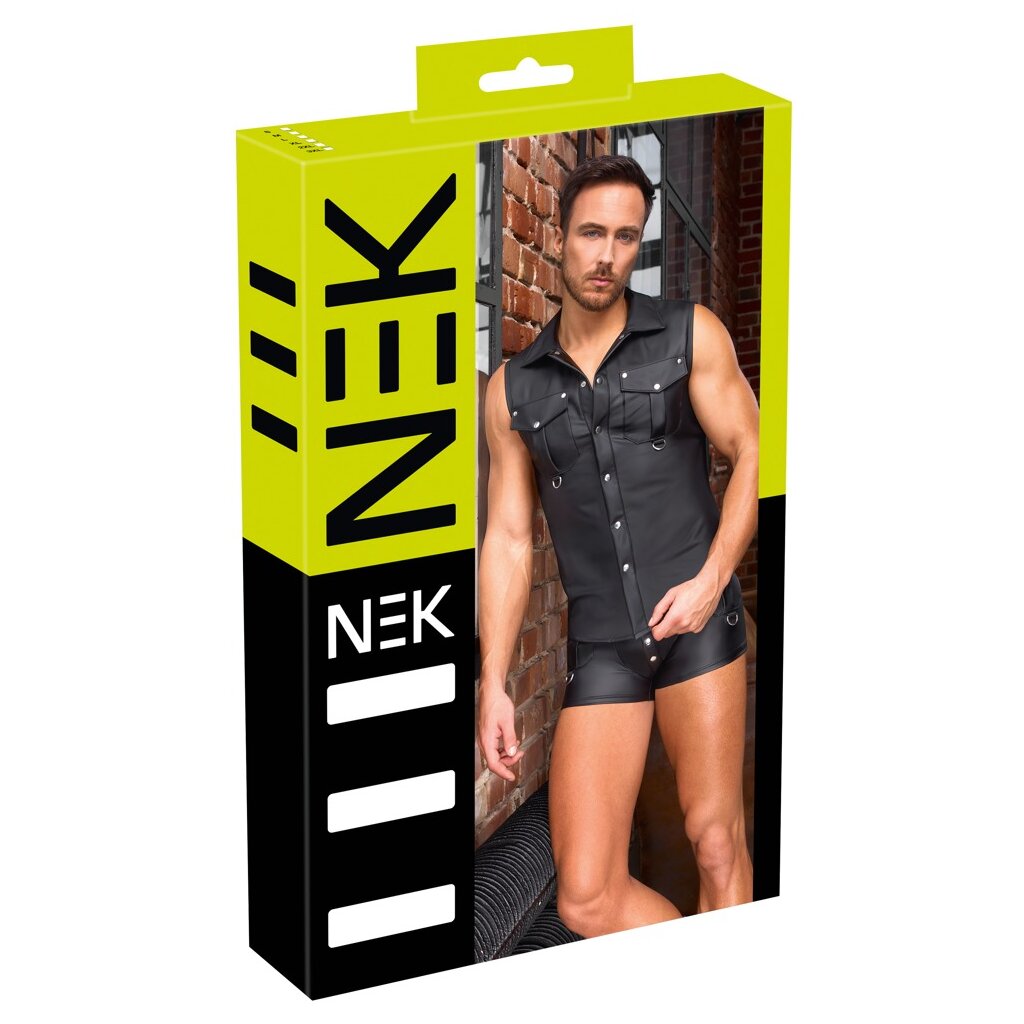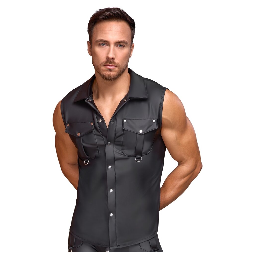 Sleeveless shirt by NEK in a body-hugging cut with a full-length snap button placket at the front. In a trendy black matte look. Slightly elastic for a comfortable, snug fit. Two patch breast pockets with D-rings.