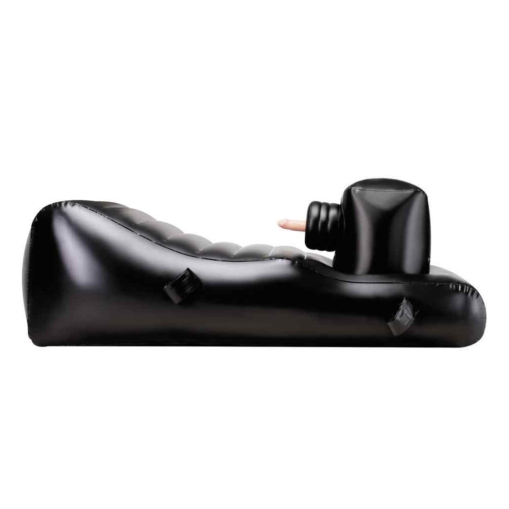 Die ultimative Sex-Maschine! »Louisiana Lounger« beschert Ihnen kraftvoll und ausdauernd totale Lust-Hochgenüsse - wann und so oft Sie möchten! In die aufblasbare, anatomisch geformte Liege wird am Fußende das aufblasbare Gehäuse für die Stoßvorrichtung fest platziert. In der Stoßvorrichtung befindet sich ein Adapter für jeweils einen der drei beiliegenden Vibratoren. Mit der handlichen, kabellosen Fernbedienung können Sie (oder Ihr Partner) die Stoßfunktion bequem ein- und ausschalten - ca. 200 Stöße pro Minute! Maße Liege: aufgeblasen 160 cm lang, 80 cm breit, Kopfteilhöhe 50 cm, Fußteilhöhe 25 cm. Farbe: Schwarz. Für ganz besondere Bondage-Stoßvergnügen können Hand- und Fußgelenke an fest platzierten Fesseln lustvoll fixiert werden! Belastbar bis 150 kg. Maße Vibratoren: Pinkfarbener G-Punkt-Vibrator 12 cm lang, Ø 3 cm. Hautfarbener Penis-Vibrator 14 cm lang, Ø 3,5 cm. Lilafarbener Penis-Vibrator 17 cm lang, Ø 3,5 cm-4 cm. Jeder gleitfreudige Vibrator mit Power-Vibration. Vibratoren auch separat nutzbar - dann ist die Vibration stufenlos regulierbar. Inklusive Batterien für die Fernbedienung, Reparatur-Set und Blasebalg. (Bitte Batterien extra bestellen: 8 x Baby, 4 x Mignon)