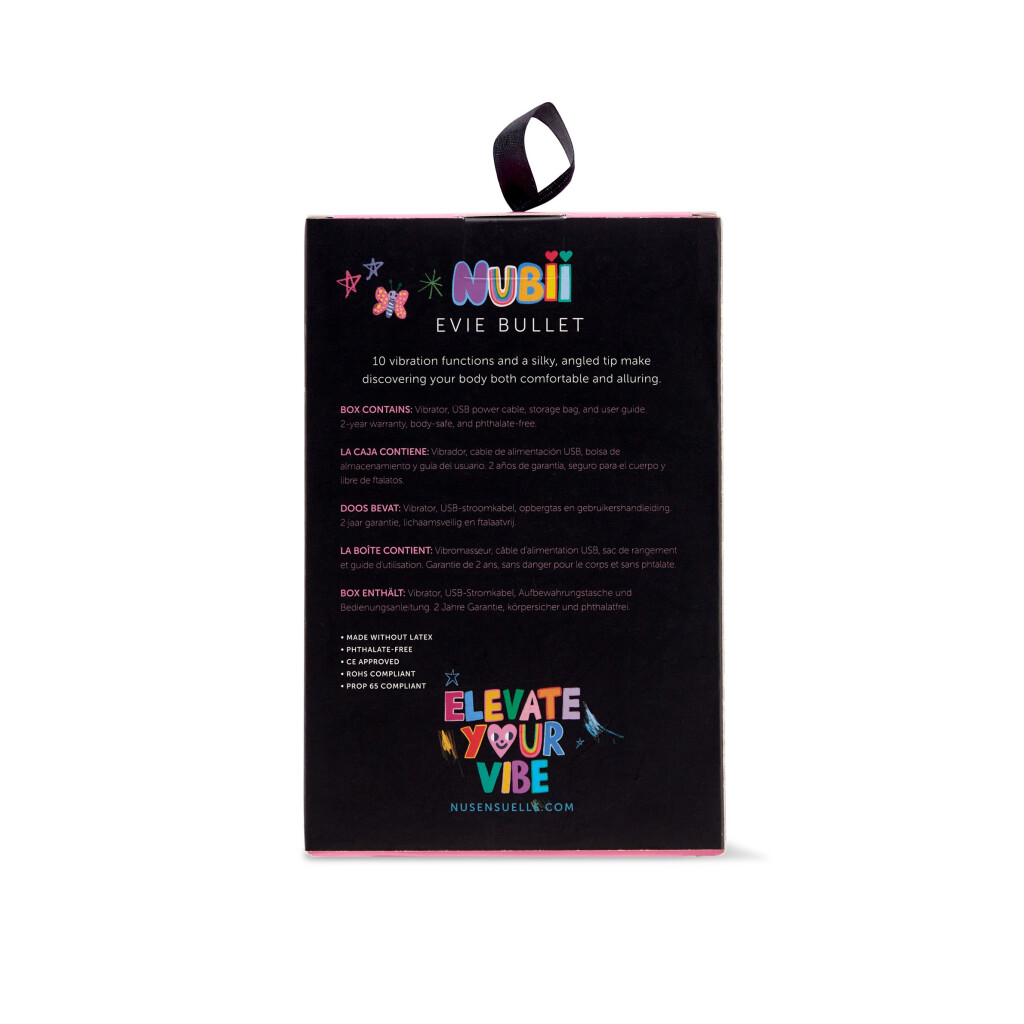 Die 5 Geschwindigkeiten und 5 Modi dieses lippenstiftförmigen Bullets ermöglichen es unseren modebewussten Nutzerinnen, furchtlos zu sein und ihre Sexualität auf eine lustvolle, kokette Art und Weise auszuleben. Das glatte, konisch zulaufende Design des Bullets erhöht den Komfort der Benutzerin beim Experimentieren mit externer Stimulation. Ganz zu schweigen davon, dass Evie über USB aufgeladen werden kann, zu 100 % körperverträglich ist, in Wasser getaucht werden kann und von unserem surrenden Nubii-Motor angetrieben wird.