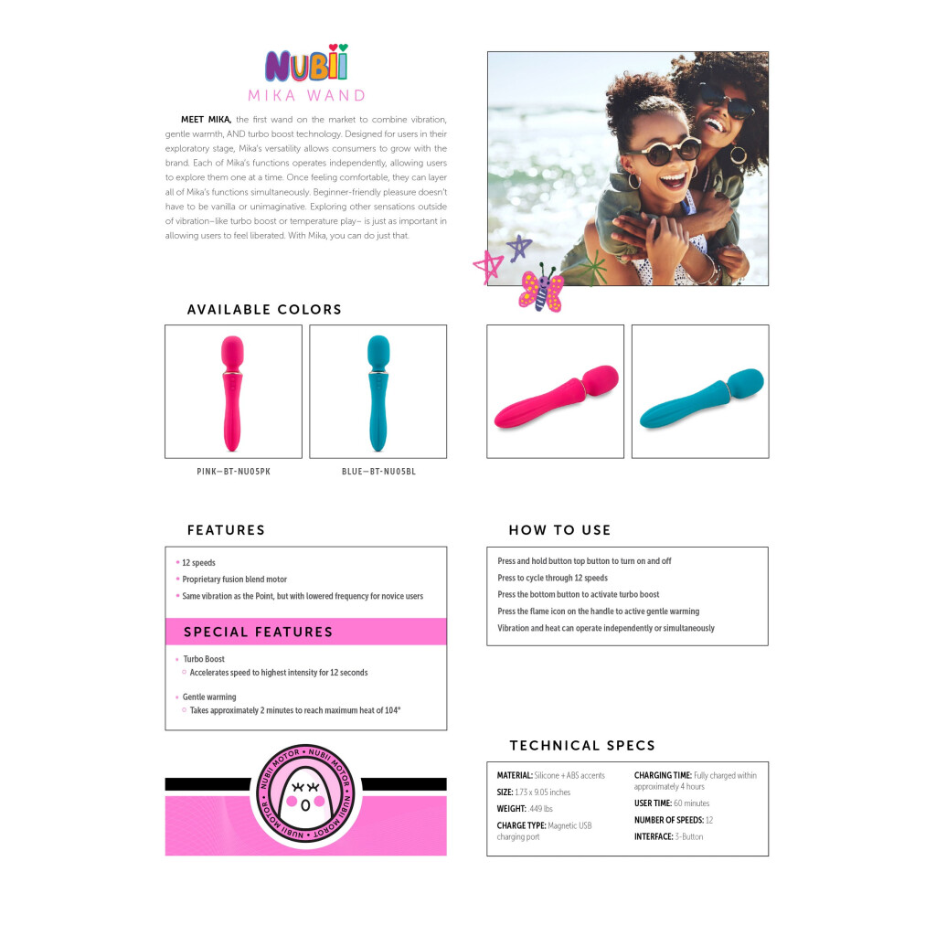 Designed for users in their exploratory stage, Mika’s versatility allows consumers to grow with the brand. Each of Mika’s functions operates independently, allowing users to explore them one at a time. Once feeling comfortable, they can layer all of Mika’s functions simultaneously. Beginner-friendly pleasure doesn’t have to be vanilla or unimaginative. Exploring other sensations outside of vibration–like turbo boost or temperature play– is just as important in allowing users to feel liberated. With Mika, you can do just that.