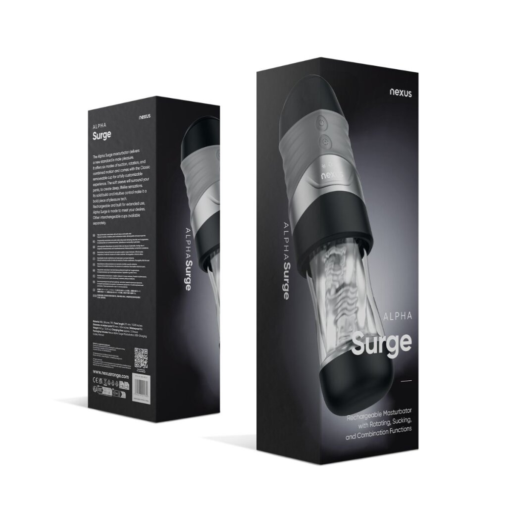 Le Alpha Surge de Nexus est un masturbateur moderne qui associe un mouvement rotatif à une fonction d’aspiration. Ses différents programmes offrent une stimulation variée et un contrôle précis de l’intensité et du rythme.