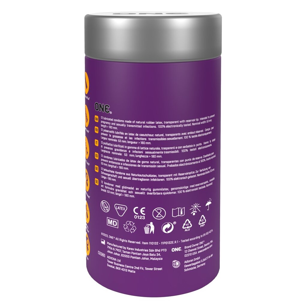 Coffret de préservatifs Mixed Pleasures de ONE avec 6 variétés différentes de préservatifs ONE : Vanish Hyperthin, Super Studs, Glowing Pleasures, Super Sensitive, Tattoo Touch et Flavor Waves.
