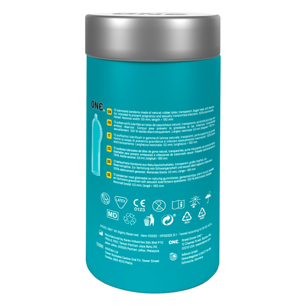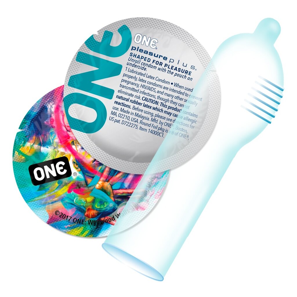 Transparent Pleasure Plus condoms from ONE for intense sensations. The ribbed, larger head area gently massages the frenulum and moves back and forth during sex – additional stimulation for both partners! The contoured shape ensures a comfortable, secure fit – the ultra-soft Sensatex natural rubber latex for a natural feeling of pleasure. Vegan and GMO-free. Lubricated with silicone oil.