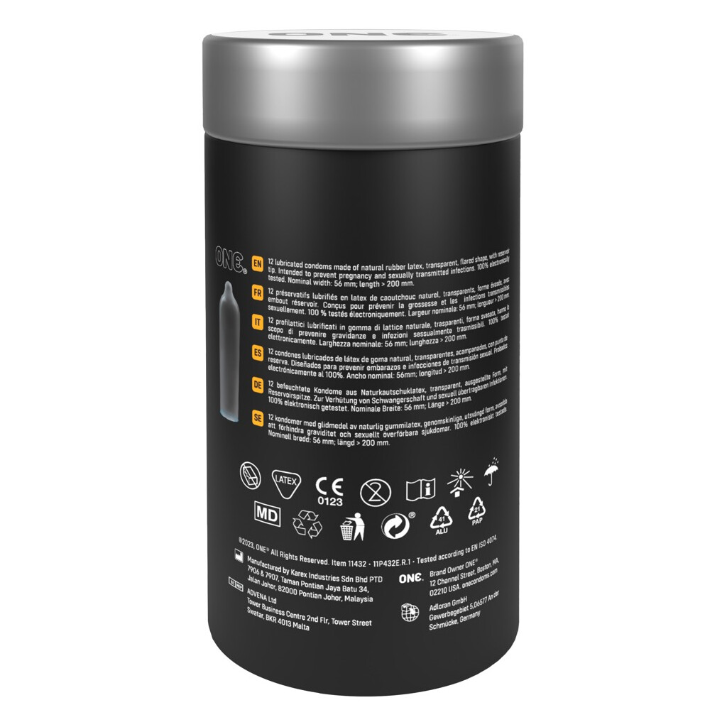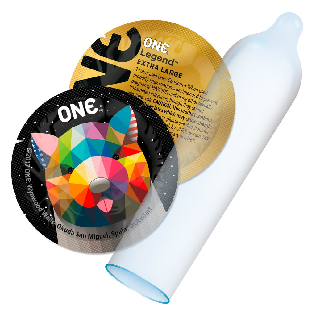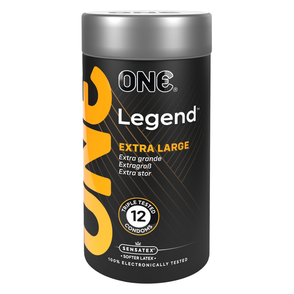 Transparent, extra-large Legend condoms from ONE for a comfortable and secure fit on larger penises. Longer and wider than conventional condoms. The flared shape with more space in the head area ensures effortless application and a secure fit with maximum comfort. The ultra-soft Sensatex natural rubber latex offers a natural feeling of pleasure. Vegan and GMO-free. Lubricated with silicone oil for perfect smoothness.
