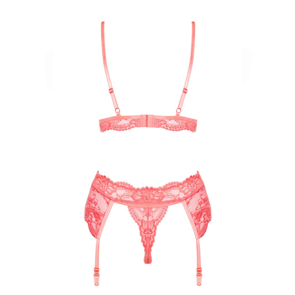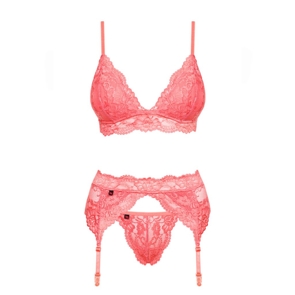 • Sexy 3-teiliges Set aus Spitze bestehend aus einem BH, einem String und einen Strapshalter