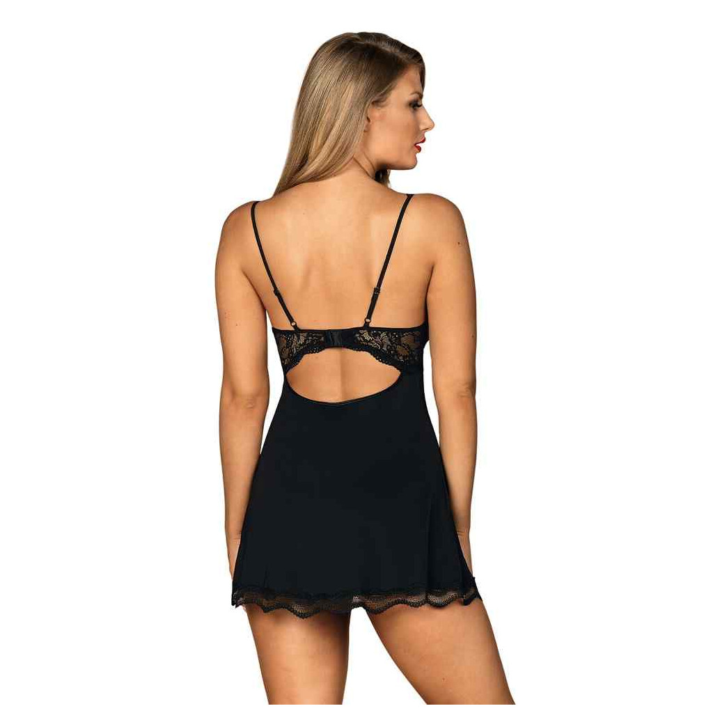 Une tenue séduisante et transparente ! Cette chemise se distingue par ses bonnets et son ourlet en dentelle. Elle est ajustée à la taille et souligne les courbes féminines de manière sexy. Un string assorti complète ce look de chambre sexy.