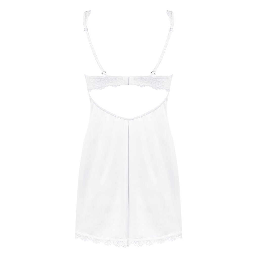 Tailliertes Dessouskleid und String im Set Amor Blanco von Obsessive. Oberteil komplett aus Spitze und mit Cup-Bügeln gearbeitet, der Saum ist ebenfalls mit feiner Spitze verziert. Rundum weich und elastisch für höchsten Tragekomfort. Im Rücken mit Hakenverschluss. Die Träger aus Spitze sind passend verstellbar. Der schlichte schöne String komplettiert diesen verführerischen Look.